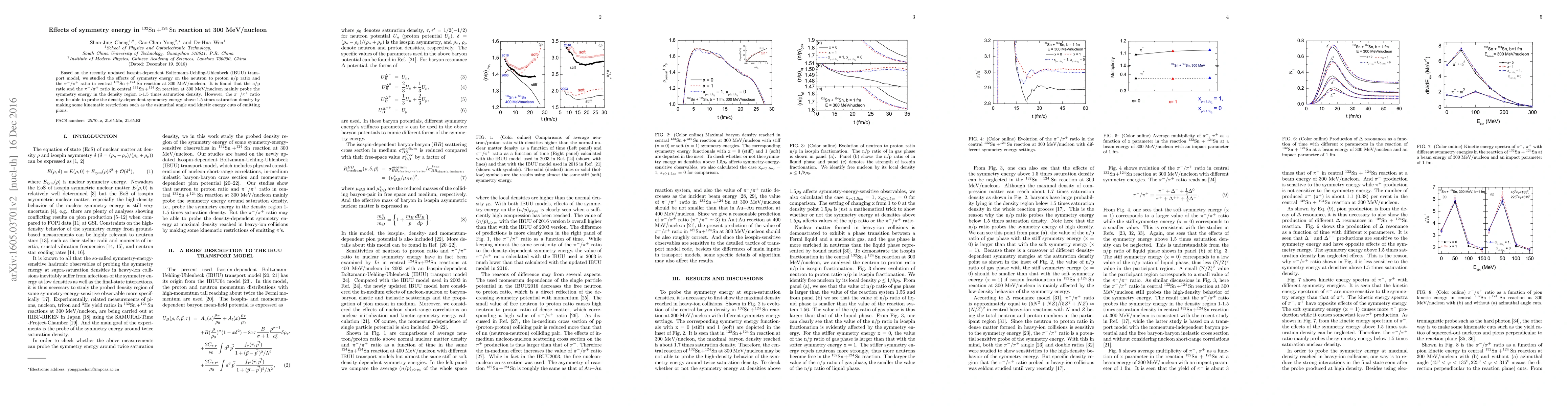 The study investigates how symmetry energy affects neutron-to-proton ratios and pion production in a nuclear reaction at 300 MeV/nucleon. It finds that certain reactions can probe the density-dependent symmetry energy above a specific saturation point.
