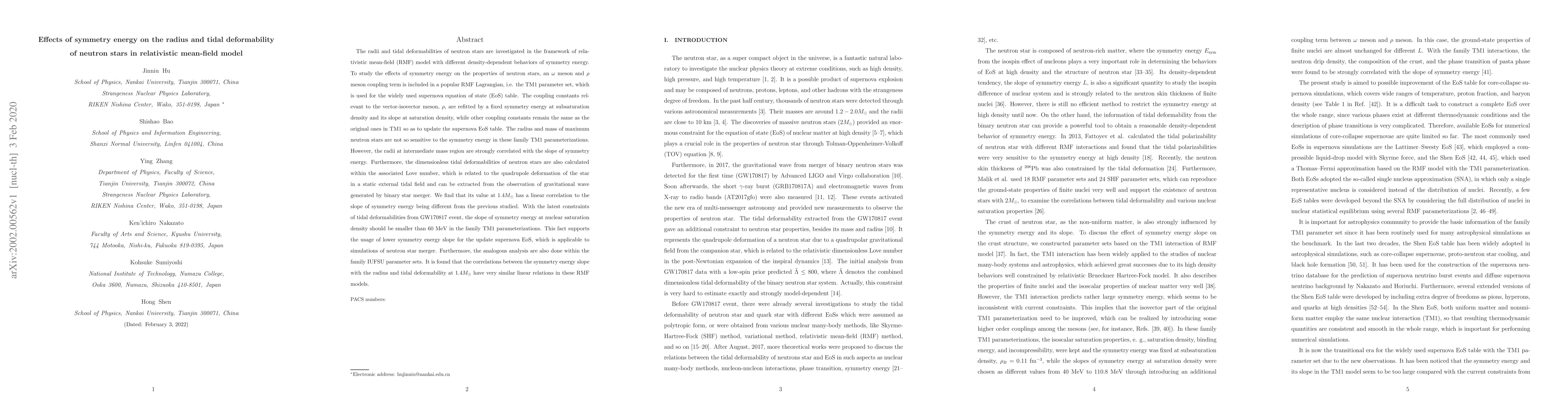 This paper investigates the impact of symmetry energy on neutron star radii and tidal deformabilities using the relativistic mean-field (RMF) model. It finds that the slope of symmetry energy at nuclear saturation density strongly correlates with neutron star radii and tidal deformabilities, especially at $1.4 M_\odot$, and suggests a lower symmetry energy slope for updated supernova equation of state tables based on GW170817 constraints.