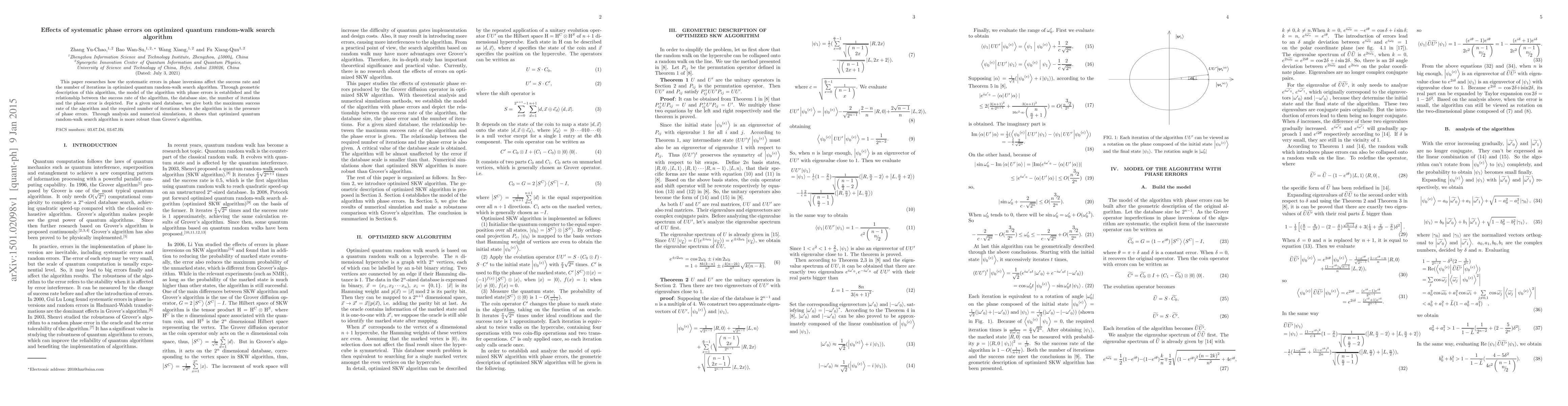 This paper investigates the impact of systematic phase errors on the success rate and iteration count of an optimized quantum random-walk search algorithm. It establishes a model to depict the relationship between phase error, database size, and algorithm performance, demonstrating that the algorithm is more robust than Grover's algorithm.