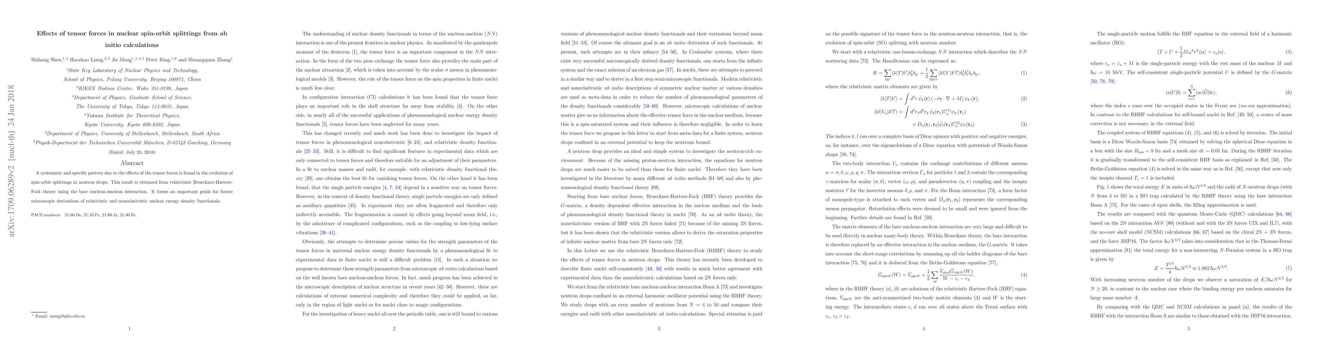 Summary: This study reveals a systematic pattern in neutron drop spin-orbit splittings influenced by tensor forces, derived from relativistic Brueckner-Hartree-Fock theory, providing crucial insights for future nuclear energy density functionals.