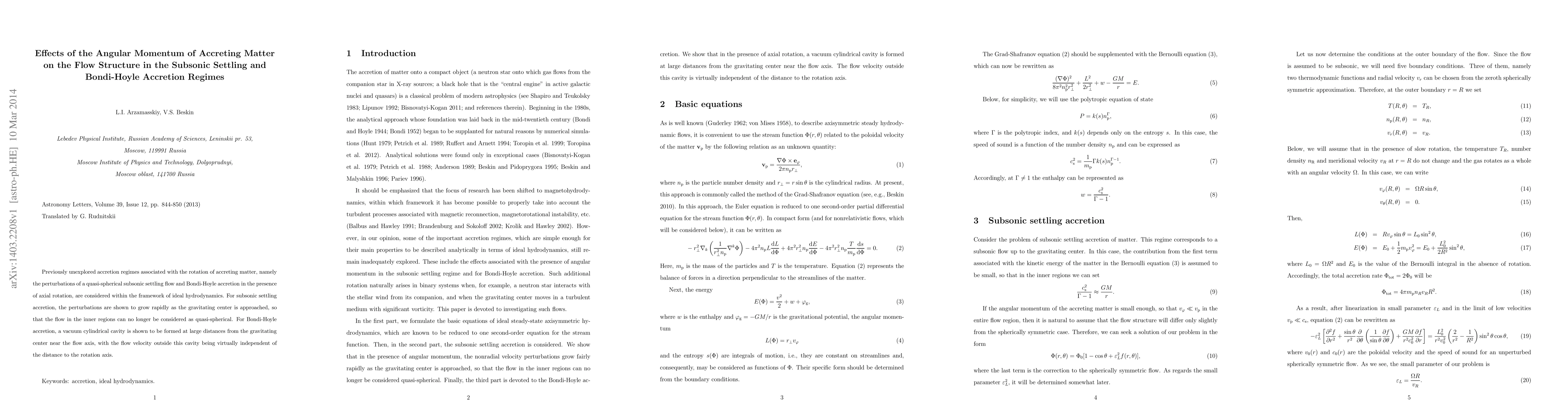Previously unexplored accretion regimes associated with the rotation of accreting matter, namely the perturbations of a quasi-spherical subsonic settling flow and Bondi-Hoyle accretion in the presence of axial rotation, are considered within the framework of ideal hydrodynamics. For subsonic settling accretion, the perturbations are shown to grow rapidly as the gravitating center is approached, so that the flow in the inner regions can no longer be considered as quasi-spherical. For Bondi-Hoyle accretion, a vacuum cylindrical cavity is shown to be formed at large distances from the gravitating center near the flow axis, with the flow velocity outside this cavity being virtually independent of the distance to the rotation axis.