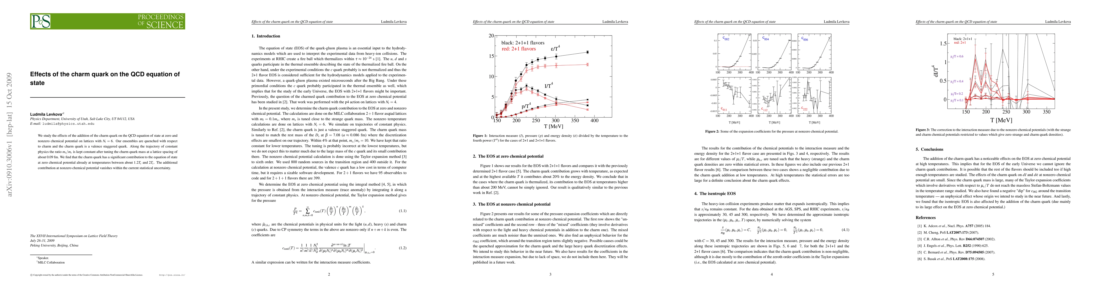 We study the effects of the addition of the charm quark on the QCD equation of state at zero and nonzero chemical potential on lattices with $N_t=6$. Our ensembles are quenched with respect to charm and the charm quark is a valence staggered quark. Along the trajectory of constant physics the ratio $m_s/m_c$ is kept constant after tuning the charm quark mass at a lattice spacing of about 0.09 fm. We find that the charm quark has a significant contribution to the equation of state at zero chemical potential already at temperatures between about $1.2T_c$ and $2T_c$. The additional contribution at nonzero chemical potential vanishes within the current statistical uncertainty.