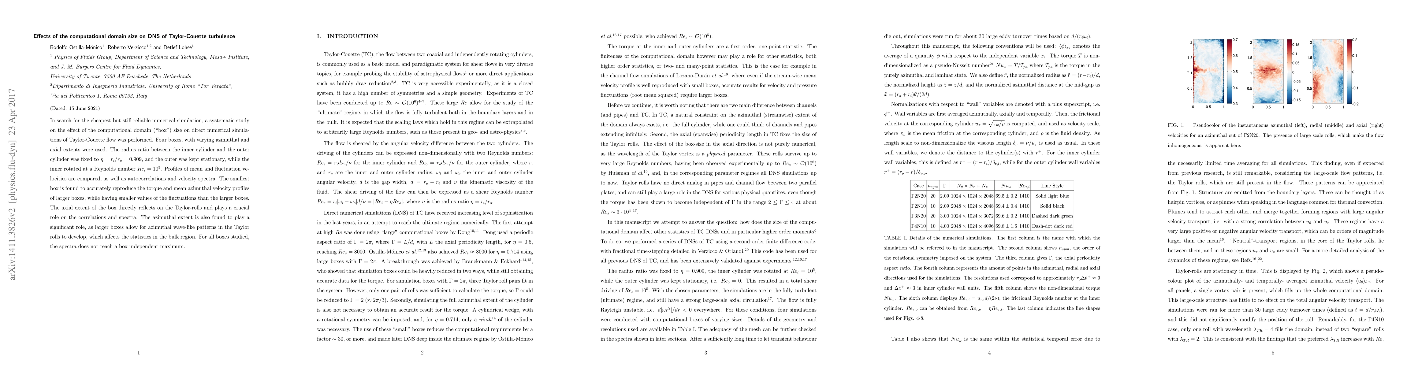In search for the cheapest but still reliable numerical simulation, a systematic study on the effect of the computational domain ("box") size on direct numerical simulations of Taylor-Couette flow was performed. Four boxes, with varying azimuthal and axial extents were used. The radius ratio between the inner cylinder and the outer cylinder was fixed to $\eta=r_i/r_o=0.909$, and the outer was kept stationary, while the inner rotated at a Reynolds number $Re_i=10^5$. Profiles of mean and fluctuation velocities are compared, as well as autocorrelations and velocity spectra. The smallest box is found to accurately reproduce the torque and mean azimuthal velocity profiles of larger boxes, while having smaller values of the fluctuations than the larger boxes. The axial extent of the box directly reflects on the Taylor-rolls and plays a crucial role on the correlations and spectra. The azimuthal extent is also found to play a significant role, as larger boxes allow for azimuthal wave-like patterns in the Taylor rolls to develop, which affects the statistics in the bulk region. For all boxes studied, the spectra does not reach a box independent maximum.