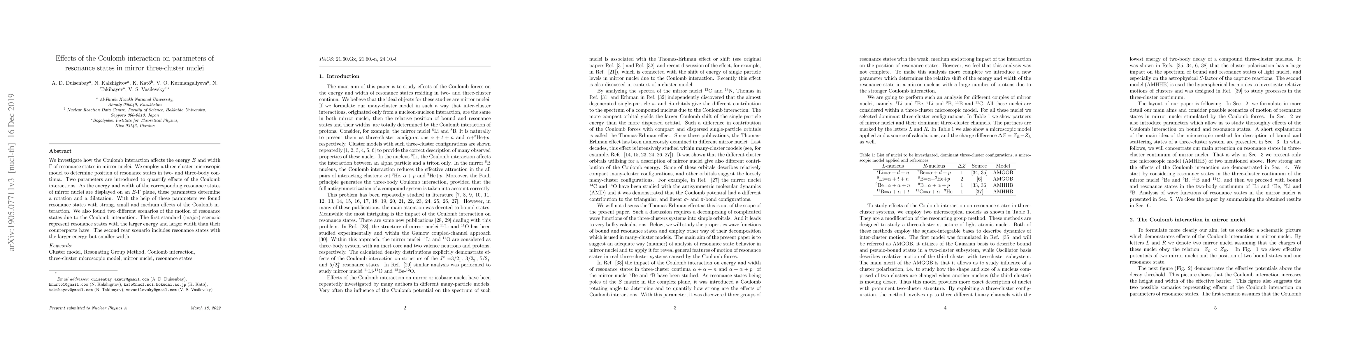 We investigate how the Coulomb interaction affects the energy $E$ and width $\Gamma$ of resonance states in mirror nuclei. We employ a three-cluster microscopic model to determine position of resonance states in two- and three-body continua. Two parameters are introduced to quantify effects of the Coulomb interactions. As the energy and width of the corresponding resonance states of mirror nuclei are displayed on an $E$-$\Gamma$ plane, these parameters determine a rotation and a dilatation. With the help of these parameters we found resonance states with strong, small and medium effects of the Coulomb interaction. We also found two different scenarios of the motion of resonance states due to the Coulomb interaction. The first standard (major) scenario represent resonance states with the larger energy and larger width than their counterparts have. The second rear scenario includes resonance states with the larger energy but smaller width.