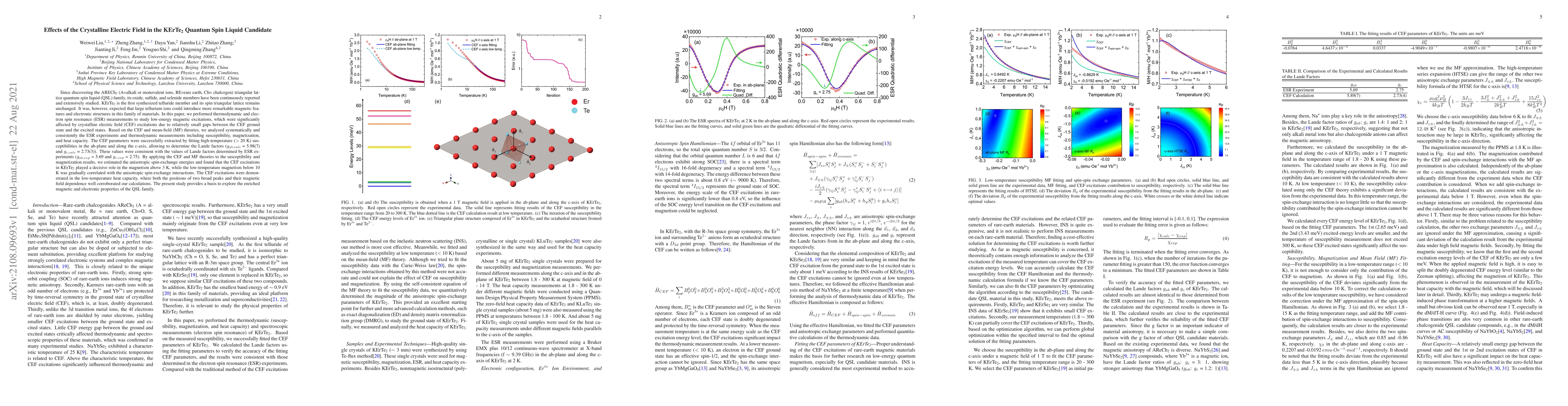 In this paper, we performed thermodynamic and electron spin resonance (ESR) measurements to study low-energy magnetic excitations, which were significantly affected by crystalline electric field (CEF) excitations due to relatively small gaps between the CEF ground state and the excited states. Based on the CEF and mean-field (MF) theories, we analyzed systematically and consistently the ESR experiments and thermodynamic measurements including susceptibility, magnetization, and heat capacity. The CEF parameters were successfully extracted by fitting high-temperature (> 20 K) susceptibilities in the ab-plane and along the c-axis, allowing to determine the Lande factors ($g_{ab,calc}$ = 5.98(7) and $g_{c,calc}$ = 2.73(3)). These values were consistent with the values of Lande factors determined by ESR experiments ($g_{ab,exp}$ = 5.69 and $g_{c,exp}$ = 2.75). By applying the CEF and MF theories to the susceptibility and magnetization results, we estimated the anisotropic spin-exchange energies and found that the CEF excitations in \ce{KErTe2} played a decisive role in the magnetism above 3 K, while the low-temperature magnetism below 10 K was gradually correlated with the anisotropic spin-exchange interactions. The CEF excitations were demonstrated in the low-temperature heat capacity, where both the positions of two broad peaks and their magnetic field dependence well corroborated our calculations. The present study provides a basis to explore the enriched magnetic and electronic properties of the QSL family.