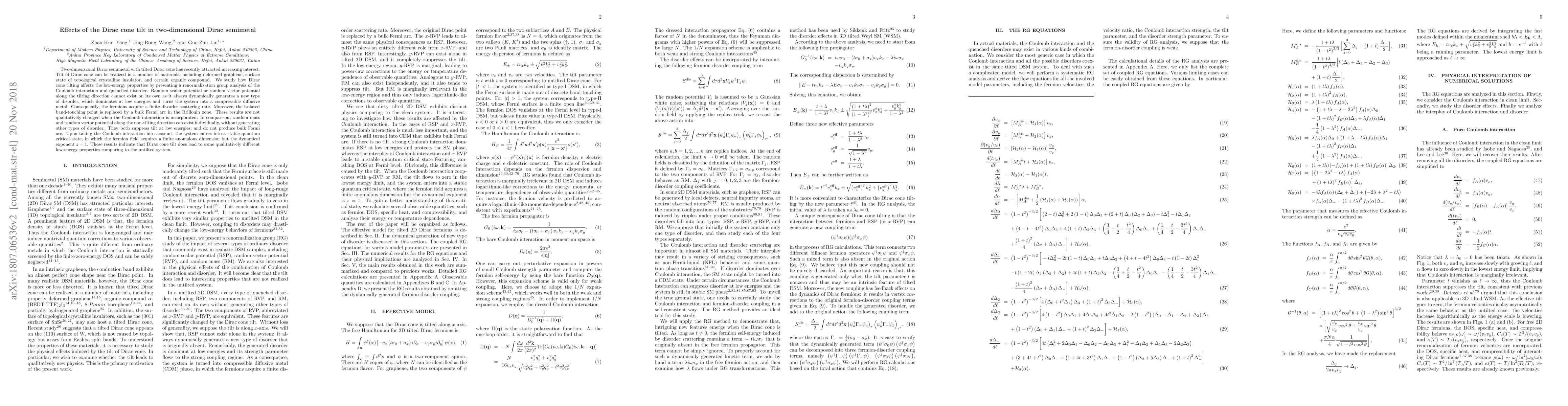 This research investigates the effects of Dirac cone tilt in two-dimensional Dirac semimetals, showing that tilt generates a new type of disorder dominating at low energies, transforming the system into a compressible metal with finite scattering rate and replacing the band-touching point with a bulk Fermi arc. The study also reveals that random mass and vector potential along non-tilting directions suppress tilt and maintain a stable quantum critical state with a finite anomalous dimension.