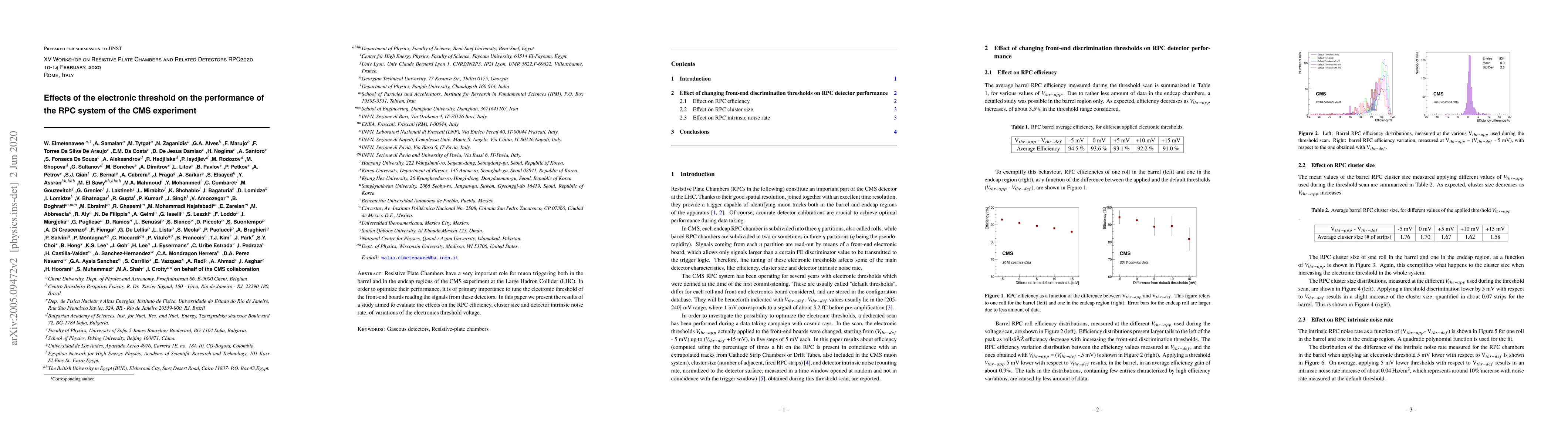 Researchers studied how adjusting the electronic threshold of a key component affects particle detection efficiency in a large Hadron Collider experiment. They found that changing this setting can impact both detection accuracy and noise levels.
