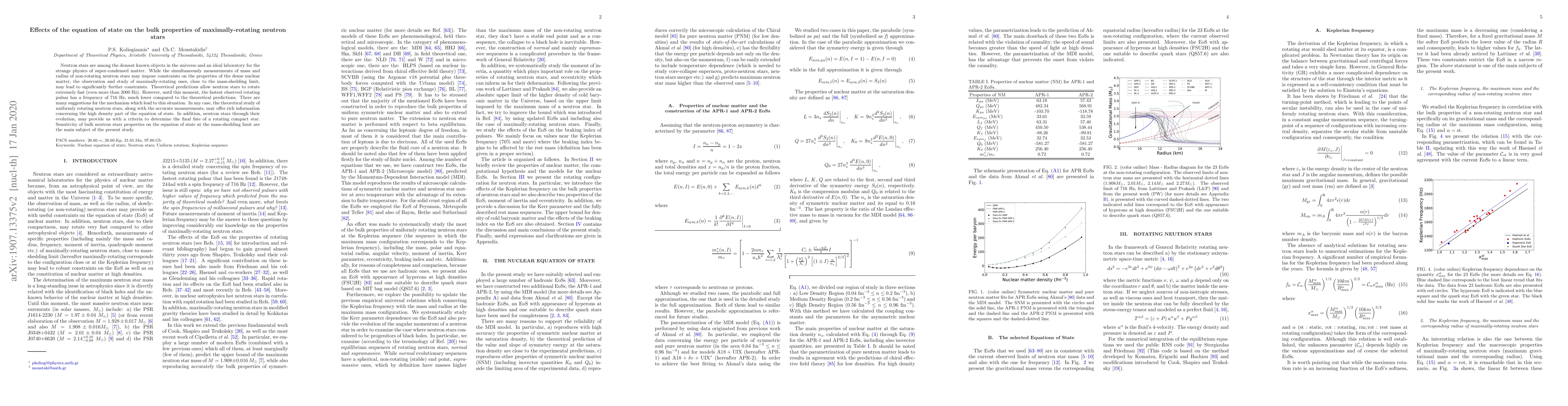 This paper explores how the equation of state affects the bulk properties of maximally-rotating neutron stars, which are near their mass-shedding limit. It investigates the potential for these stars to provide further constraints on dense nuclear matter compared to non-rotating neutron stars.