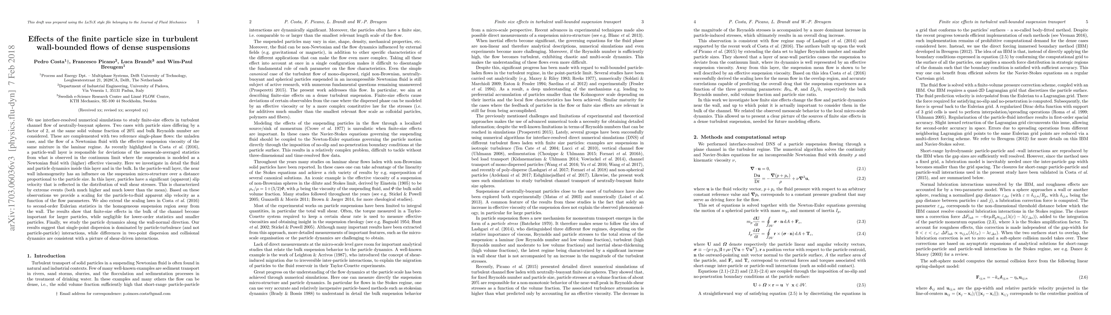 This paper investigates the effects of finite particle size on turbulent wall-bounded flows of dense suspensions using interface-resolved simulations. It finds significant near-wall particle slip and extreme shear stress variations, while bulk effects are more pronounced for larger particles, highlighting the importance of particle-turbulence interactions in dispersion.