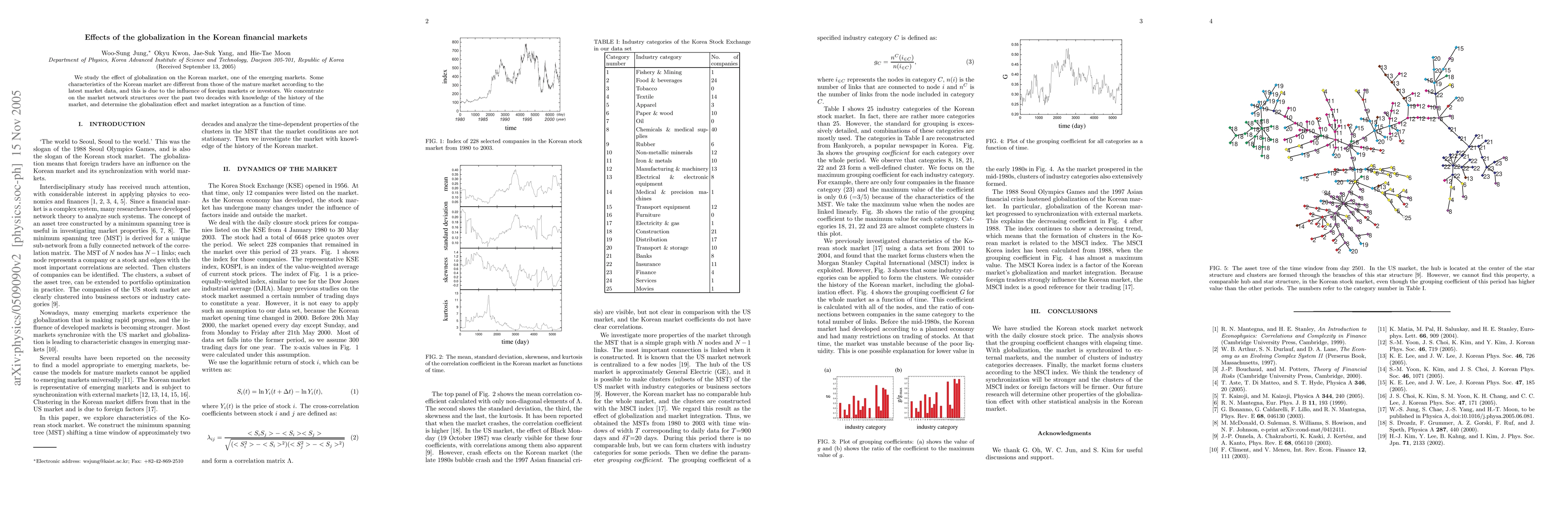 We study the effect of globalization on the Korean market, one of the emerging markets. Some characteristics of the Korean market are different from those of the mature market according to the latest market data, and this is due to the influence of foreign markets or investors. We concentrate on the market network structures over the past two decades with knowledge of the history of the market, and determine the globalization effect and market integration as a function of time.