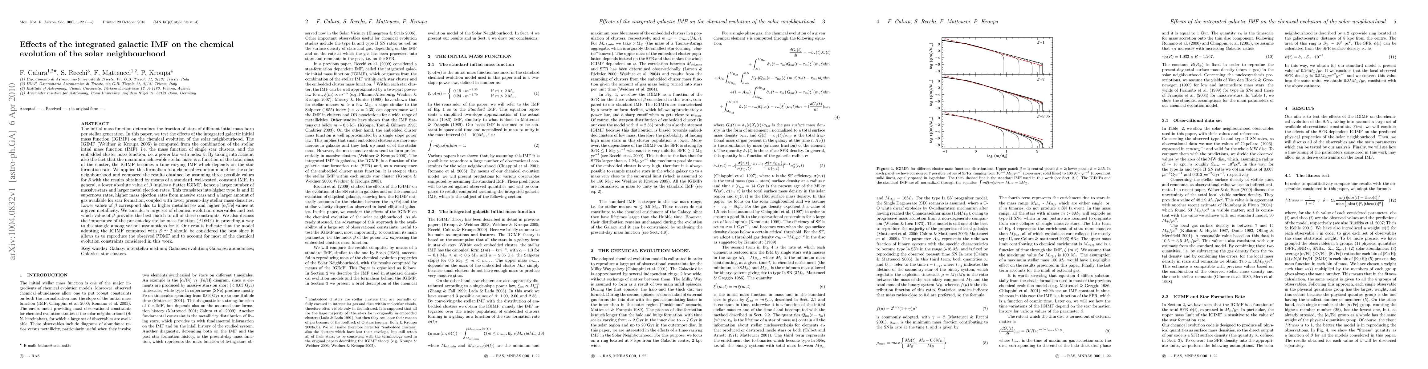 This paper investigates the impact of the integrated galactic initial mass function (IGIMF) on the chemical evolution of the solar neighbourhood. The IGIMF, which varies with the star formation rate, is shown to result in higher supernova rates and metal ejection rates compared to a standard constant IMF, leading to a more abundant gas supply for star formation. The IGIMF model with beta ~2 best reproduces the observed stellar mass function and satisfies most chemical evolution constraints.