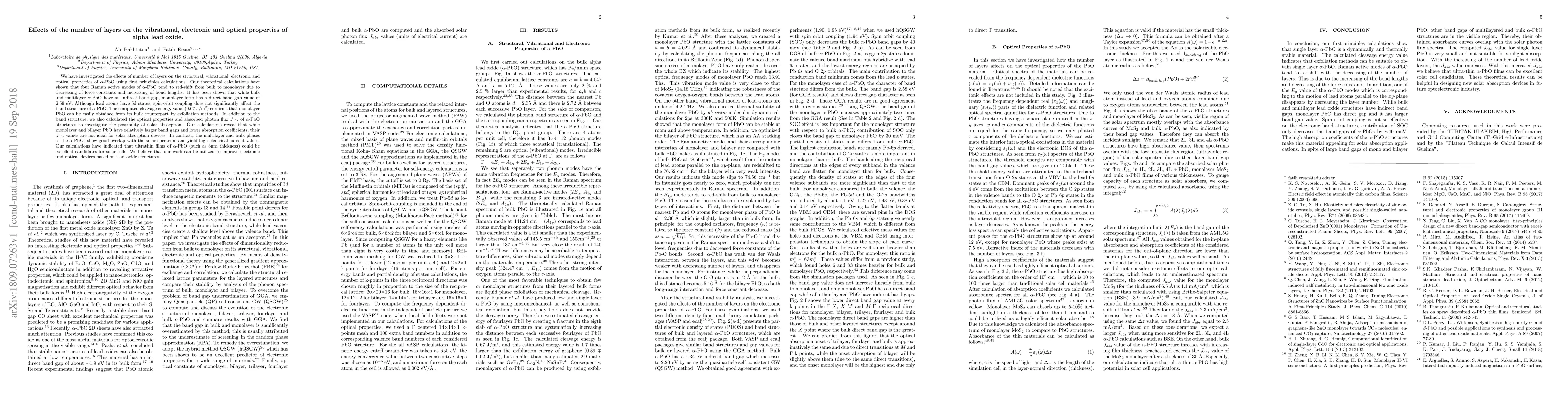 We have investigated the effects of number of layers on the structural, vibrational, electronic and optical properties of $\alpha$-PbO using first principles calculations. Our theoretical calculations have shown that four Raman active modes of $\alpha$-PbO tend to red-shift from bulk to monolayer due to decreasing of force constants and increasing of bond lengths. It has been shown that while bulk and multilayer $\alpha$-PbO have an indirect band gap, monolayer form has a direct band gap value of 2.59 eV. Although lead atoms have 5d states, spin-orbit coupling does not significantly affect the band structure of $\alpha$-PbO. The computed cleavage energy value (0.67 J/m$^2$) confirms that monolayer PbO can be easily obtained from its bulk counterpart by exfoliation methods. In addition to the band structure, we also calculated the optical properties and absorbed photon flux $J_{abs}$ of $\alpha$-PbO structures to investigate the possibility of solar absorption. Our calculations reveal that while monolayer and bilayer PbO have relatively larger band gaps and lower absorption coefficients, their $J_{abs}$ values are not ideal for solar absorption devices. In contrast, the multilayer and bulk phases of the $\alpha$-PbOs show good overlap with the solar spectrum and yield high electrical current values. Our calculations have indicated that ultrathin films of $\alpha$-PbO (such as 3nm thickness) could be excellent candidates for solar cells. We believe that our work can be utilized to improve electronic and optical devices based on lead oxide structures.