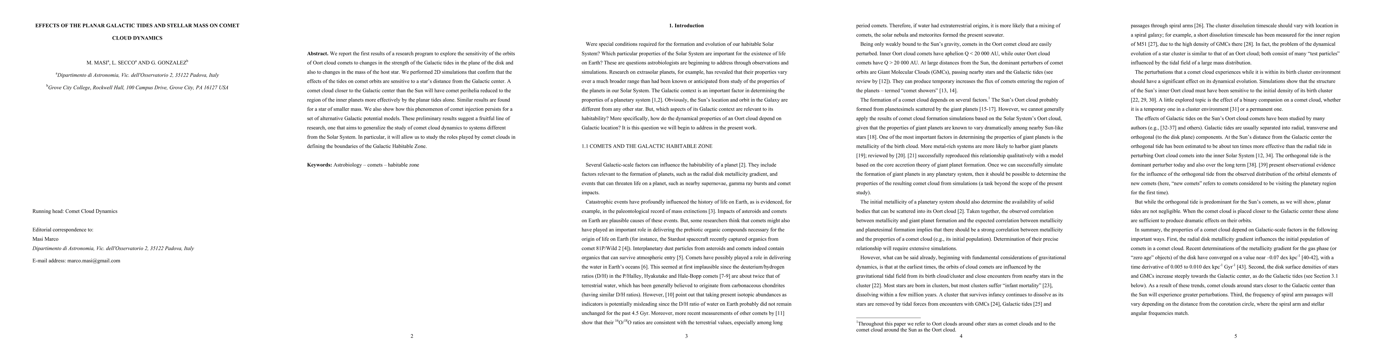 We report the first results of a research program to explore the sensitivity of the orbits of Oort cloud comets to changes in the strength of the Galactic tides in the plane of the disk and also to changes in the mass of the host star. We performed 2D simulations that confirm that the effects of the tides on comet orbits are sensitive to a star's distance from the Galactic center. A comet cloud closer to the Galactic center than the Sun will have comet perihelia reduced to the region of the inner planets more effectively by the planar tides alone. Similar results are found for a star of smaller mass. We also show how this phenomenon of comet injection persists for a set of alternative Galactic potential models. These preliminary results suggest a fruitful line of research, one that aims to generalize the study of comet cloud dynamics to systems different from the Solar System. In particular, it will allow us to study the roles played by comet clouds in defining the boundaries of the Galactic Habitable Zone.