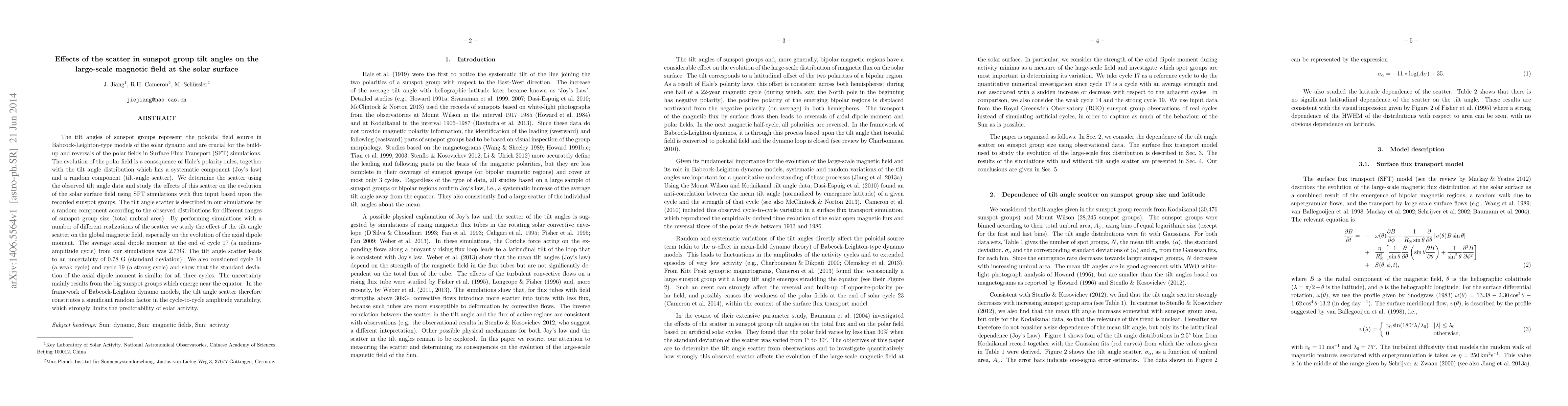 This study investigates how scatter in sunspot group tilt angles affects the large-scale solar magnetic field, using Babcock-Leighton-type dynamo models and Surface Flux Transport simulations. The tilt angle scatter introduces a significant uncertainty in the axial dipole moment, especially from large sunspot groups near the equator, thus limiting the predictability of solar activity cycles.
