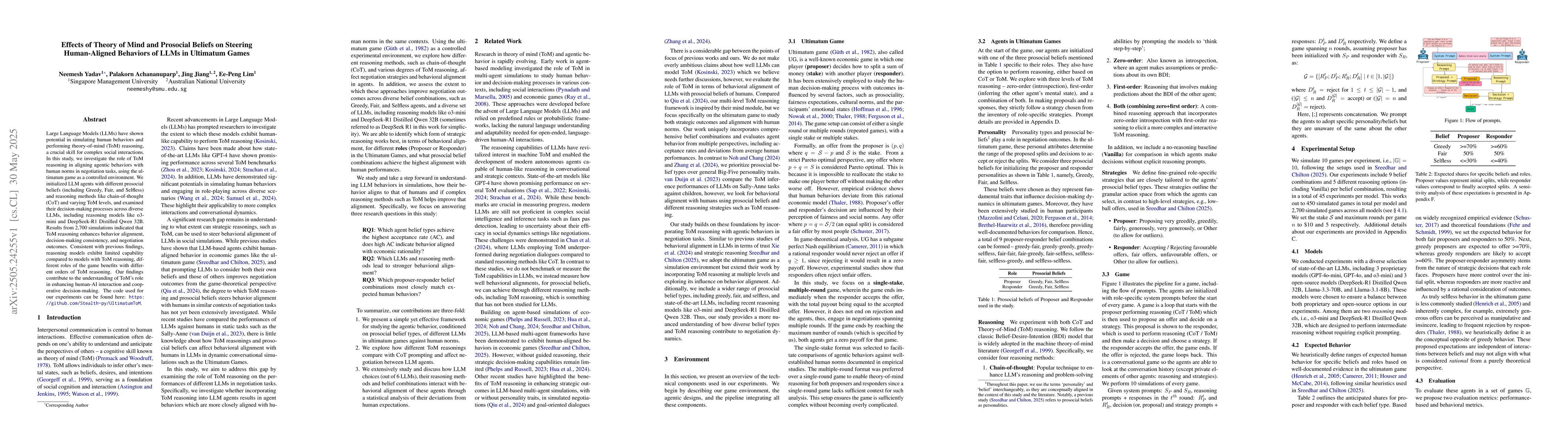 The study investigated the impact of Theory of Mind (ToM) and prosocial beliefs on the behavioral alignment of LLMs in ultimatum games, using six diverse LLMs and varying ToM levels, along with chain-of-thought (CoT) and different reasoning methods.
