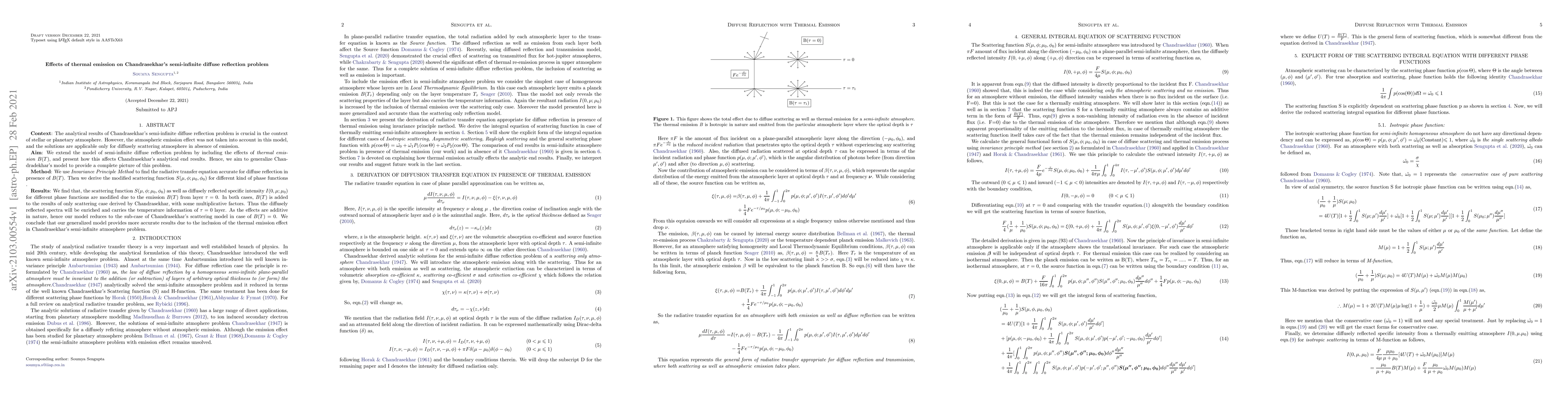 Researchers extend Chandrasekhar's semi-infinite diffuse reflection model to include thermal emission effects, resulting in more accurate predictions of diffusely reflected spectra and enriched temperature information.