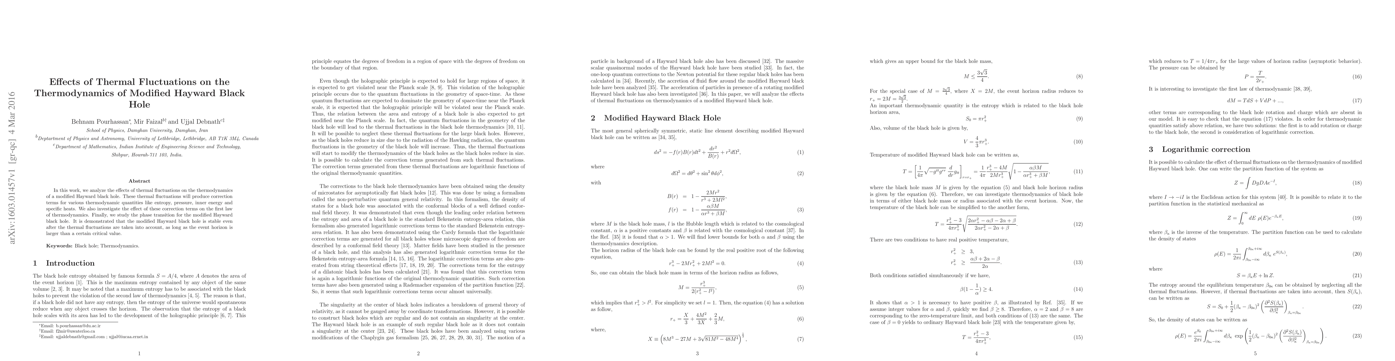This paper examines how thermal fluctuations impact the thermodynamics of a modified Hayward black hole, revealing correction terms for entropy, pressure, and specific heats. It concludes that the modified Hayward black hole remains stable provided its event horizon exceeds a critical size.