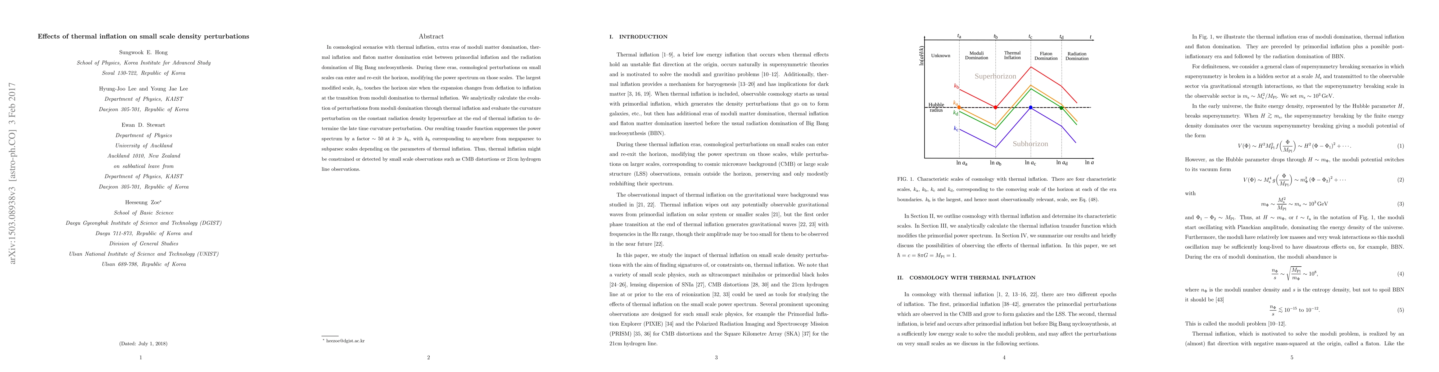 This paper investigates how thermal inflation affects small-scale density perturbations, finding that it modifies the power spectrum significantly. The resulting transfer function suppresses the power spectrum by a factor of ~50 on scales larger than $k_\mathrm{b}$, which spans from megaparsec to subparsec scales, potentially detectable via CMB distortions or 21cm hydrogen line observations.