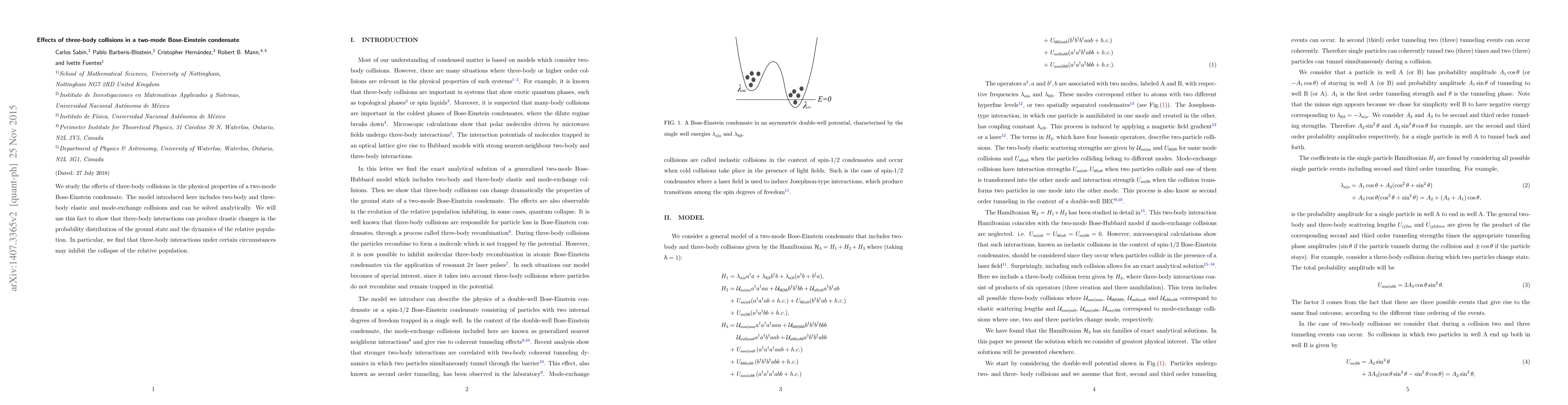 This paper investigates the impact of three-body collisions on a two-mode Bose-Einstein condensate, revealing that these interactions significantly affect the ground state probability distribution and the dynamics of relative population. It demonstrates that under certain conditions, three-body collisions can prevent the collapse of the relative population.