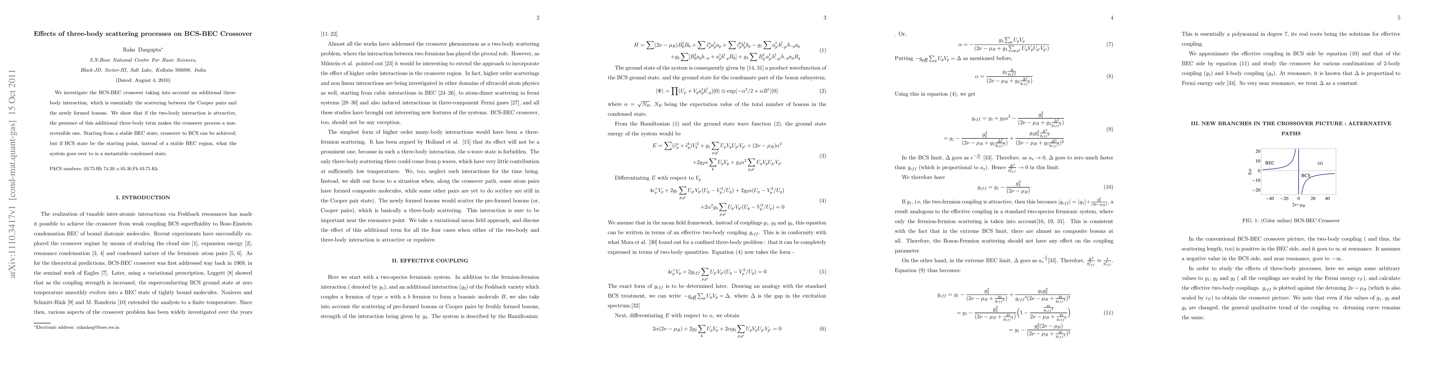 We investigate the BCS-BEC crossover taking into account an additional three-body interaction, which is essentially the scattering between the Cooper pairs and the newly formed bosons. We show that if the two-body interaction is attractive, the presence of this additional three-body term makes the crossover process a nonreversible one. Starting from a stable Bose-Einstein condensate (BEC) state, crossover to BCS can be achieved; but if the BCS state is the starting point, instead of a stable BEC region, what the system crosses over to is a metastable condensed state.