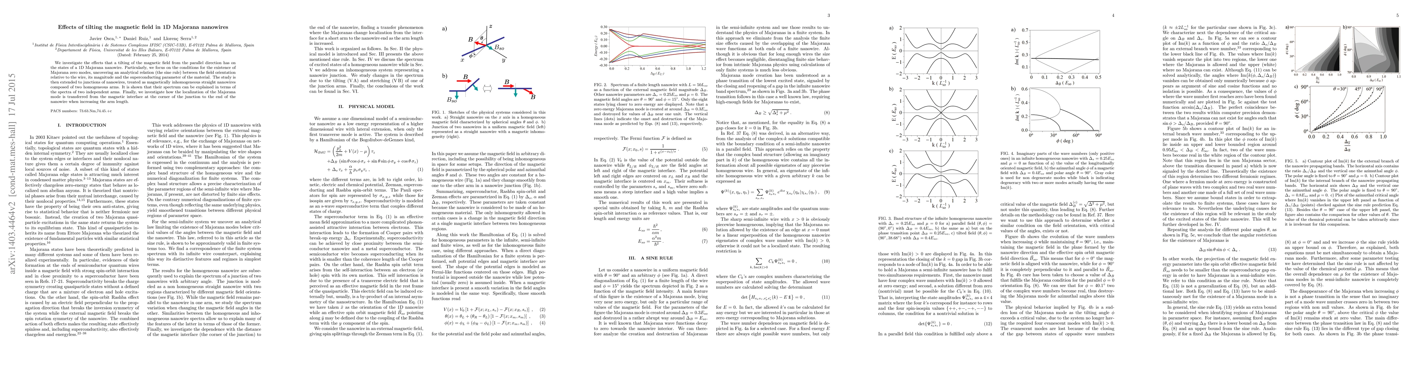 Researchers investigated how tilting a magnetic field affects 1D Majorana nanowires, finding an analytical relation between the field orientation, magnitude, and material properties that enables the existence of Majorana zero modes.