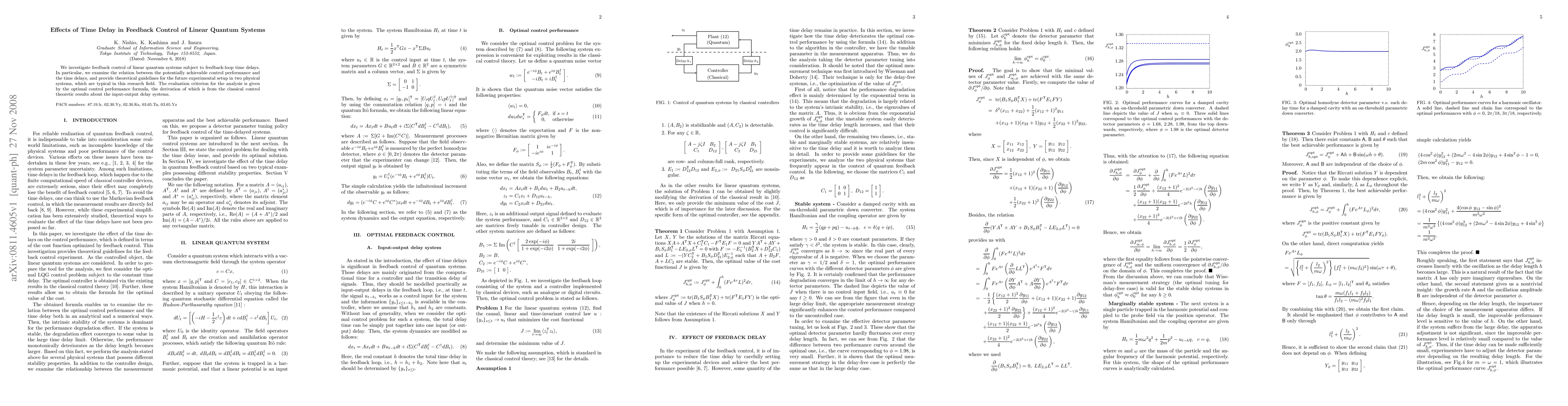 This paper explores the impact of feedback-loop time delays on the control of linear quantum systems, establishing theoretical guidelines for optimal control performance and providing insights for future experimental setups in typical quantum systems. The analysis uses a classical control theoretic approach to derive an optimal control performance formula.