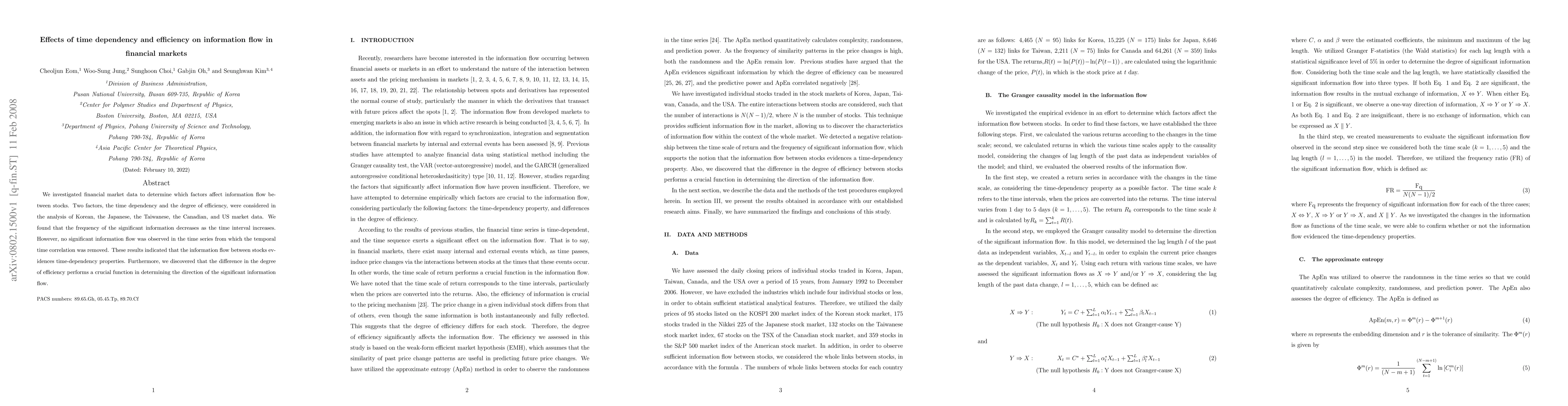 This study found that financial markets exhibit time-dependent information flow, where significant information is lost over longer intervals, and efficiency plays a crucial role in determining the direction of this flow.