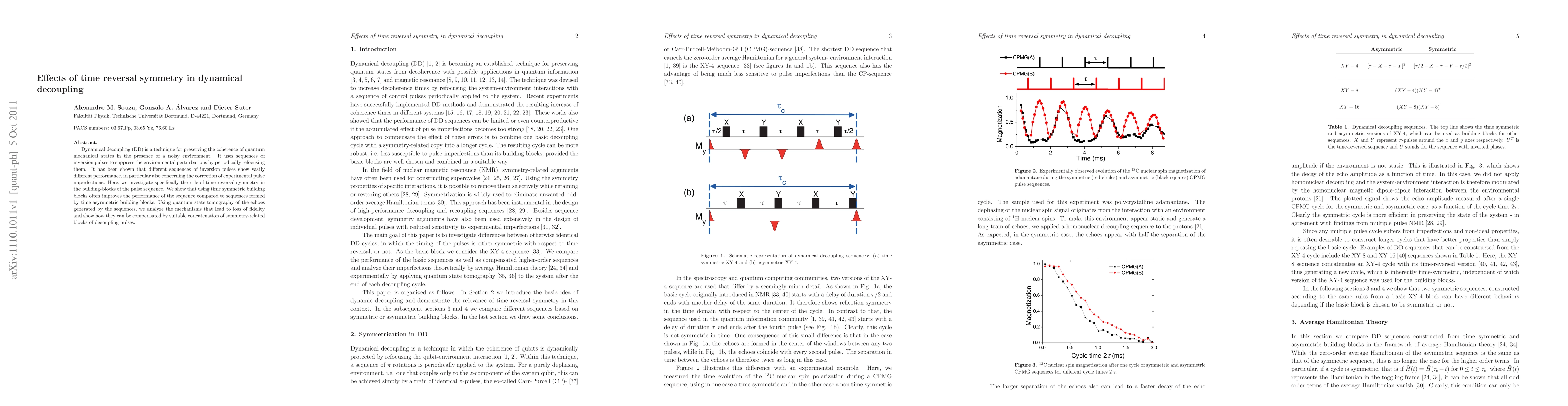 This paper explores how time-reversal symmetry in dynamical decoupling sequences enhances the preservation of quantum coherence. It demonstrates that sequences with time-symmetric building blocks outperform those with asymmetric ones, and uses quantum state tomography to identify and compensate for fidelity loss mechanisms.