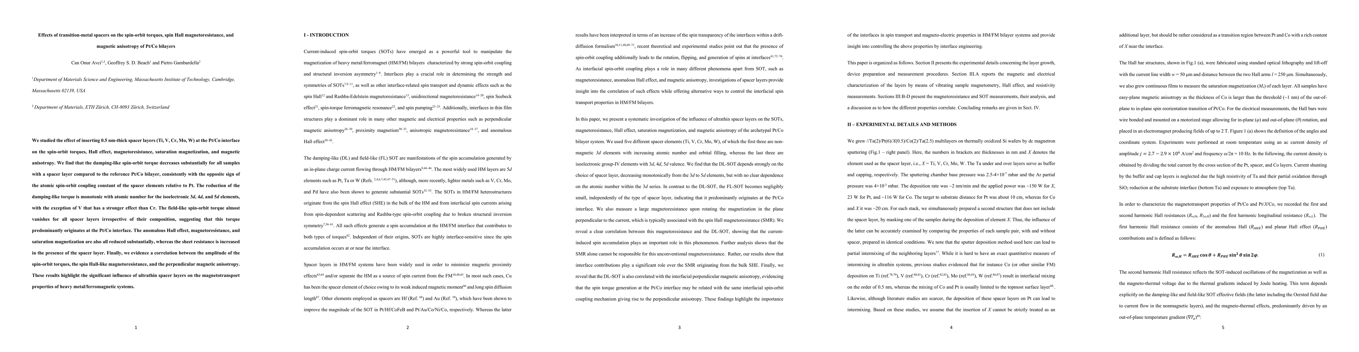 This study investigates how inserting 0.5 nm-thick transition-metal spacers (Ti, V, Cr, Mo, W) into Pt/Co bilayers affects spin-orbit torques, magnetic anisotropy, and magnetoresistance. The damping-like spin-orbit torque decreases significantly with spacer layers, correlating with the atomic spin-orbit coupling constant, while the field-like torque nearly vanishes, indicating its origin at the Pt/Co interface.
