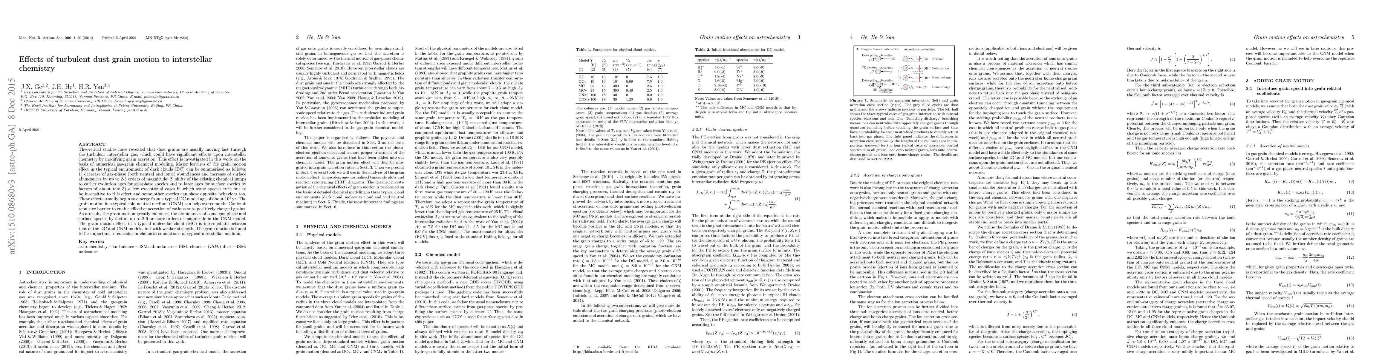 This paper investigates how turbulent dust grain motion influences interstellar chemistry through numerical gas-grain chemical modeling. It finds that grain motion significantly alters gas-phase and surface species abundances, shifts chemical jump timings, and enhances species abundances by up to several orders of magnitude, especially in dark clouds and cold neutral media.