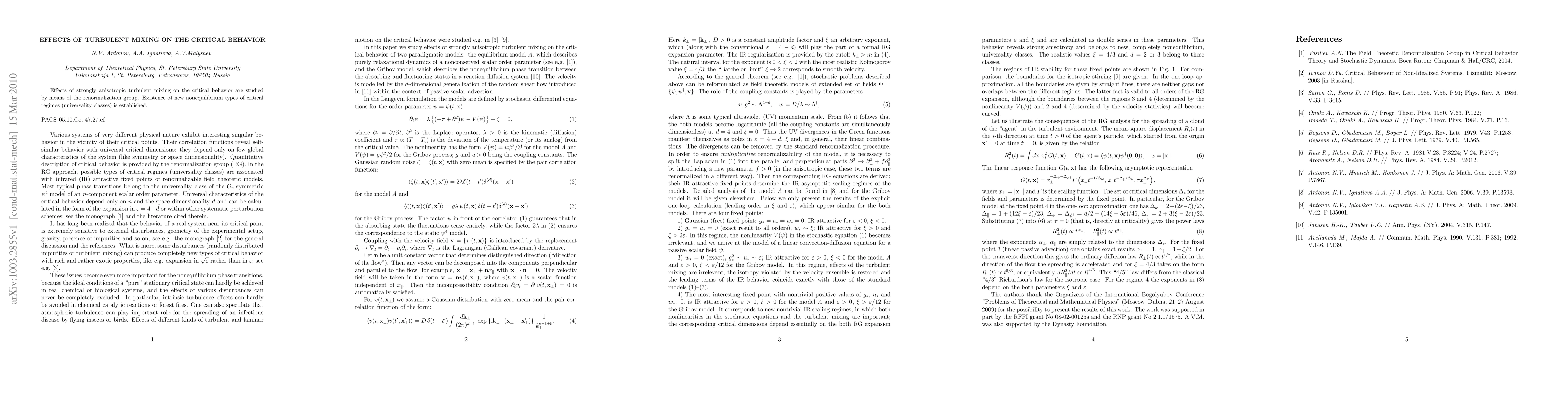 This paper investigates the impact of strongly anisotropic turbulent mixing on critical behavior using renormalization group analysis, focusing on two models: the equilibrium model A and the Gribov model. It establishes the existence of new nonequilibrium critical regimes (universality classes).