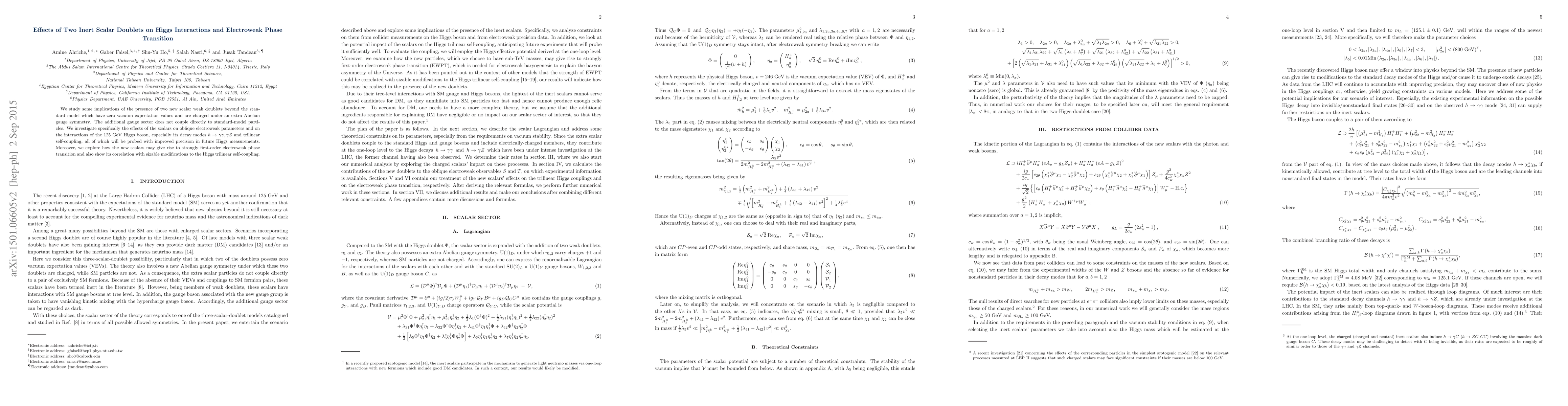This paper examines the effects of two inert scalar doublets under a dark Abelian gauge symmetry on electroweak parameters and Higgs interactions, including decay modes and trilinear coupling. It also investigates the potential for these scalars to induce a strongly first-order electroweak phase transition, correlating it with changes in the Higgs trilinear coupling.
