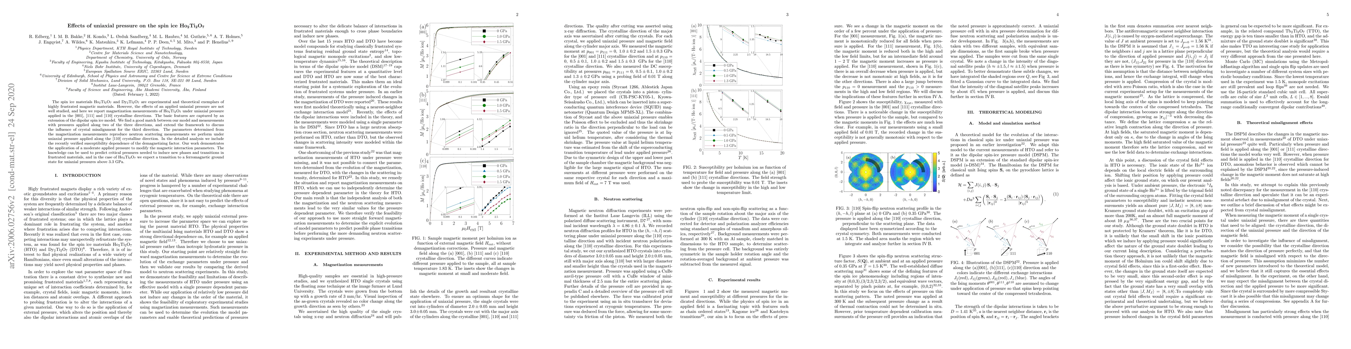 The study employs magnetization measurements, Monte Carlo simulations, and neutron scattering to investigate the effects of uniaxial pressure on the spin ice material Ho2Ti2O7, extending the dipolar spin ice model to include pressure effects.