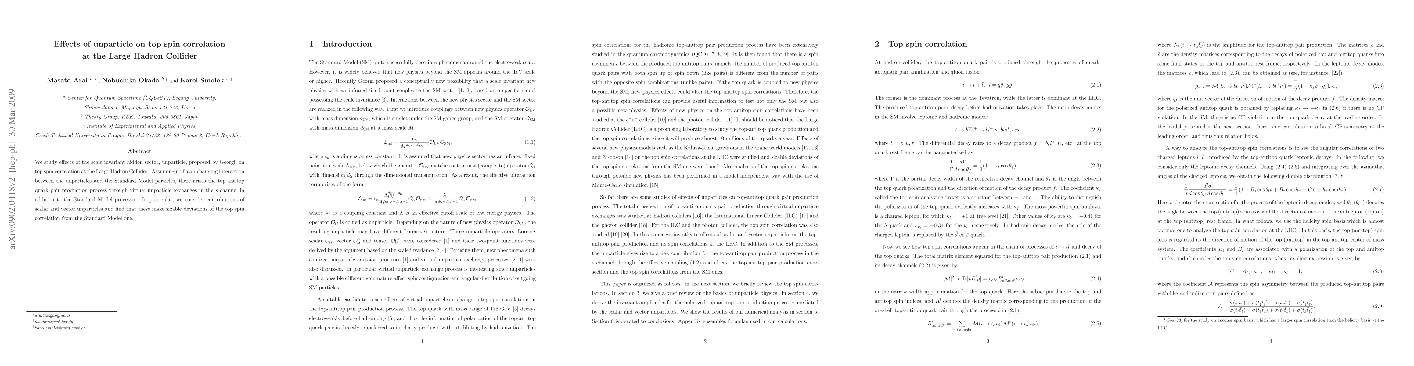 This paper investigates the influence of unparticles, a hypothetical scale-invariant hidden sector, on top spin correlations at the Large Hadron Collider. It finds that scalar and vector unparticles can significantly alter top spin correlations beyond Standard Model predictions, assuming no flavor-changing interactions.
