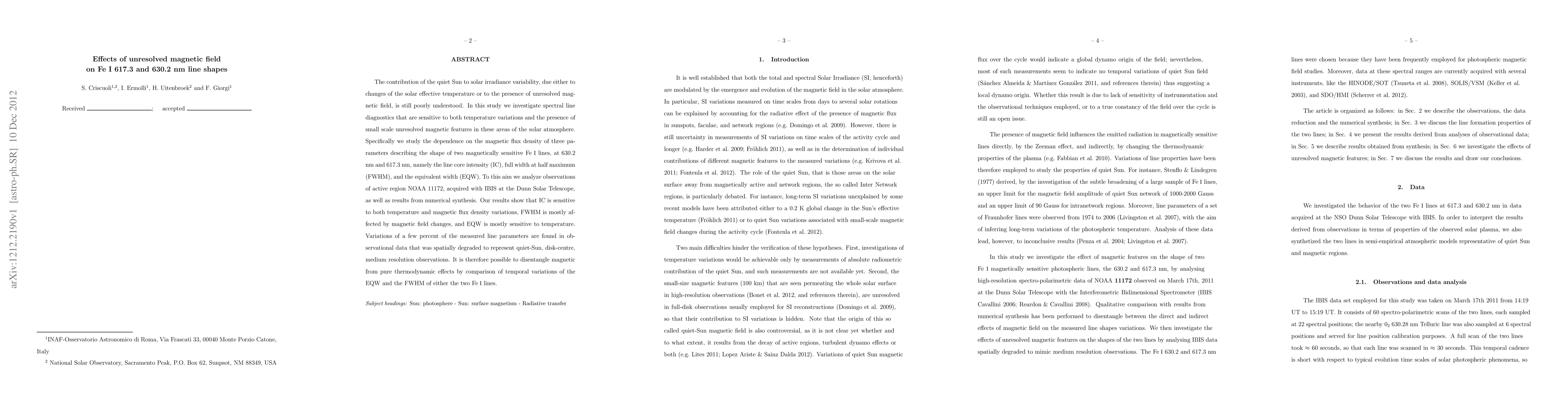 The contribution of the quiet Sun to solar irradiance variability, due either to changes of the solar effective temperature or to the presence of unresolved magnetic field, is still poorly understood. In this study we investigate spectral line diagnostics that are sensitive to both temperature variations and the presence of small scale unresolved magnetic features in these areas of the solar atmosphere. Specifically we study the dependence on the magnetic flux density of three parameters describing the shape of two magnetically sensitive FeI lines, at 630.2 nm and 617.3 nm, namely the line core intensity (IC), full width at half maximum (FWHM), and the equivalent width (EQW). To this aim we analyze observations of active region NOAA 11172, acquired with IBIS at the Dunn Solar Telescope, as well as results from numerical synthesis. Our results show that IC is sensitive to both temperature and magnetic flux density variations, FWHM is mostly affected by magnetic field changes, and EQW is mostly sensitive to temperature. Variations of a few percent of the measured line parameters are found in observational data that was spatially degraded to represent quiet-Sun, disk-centre, medium resolution observations. It is therefore possible to disentangle magnetic from pure thermodynamic effects by comparison of temporal variations of the EQW and the FWHM of either the two FeI lines.