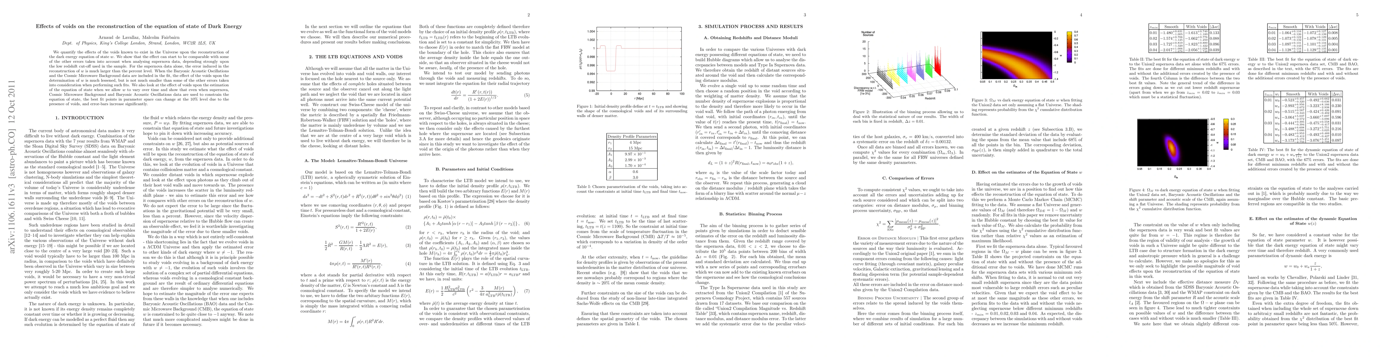 The presence of voids in the universe can significantly impact the reconstruction of dark energy's equation of state, particularly when using supernova data alone. Including other data sources reduces this effect, but it remains a notable consideration.