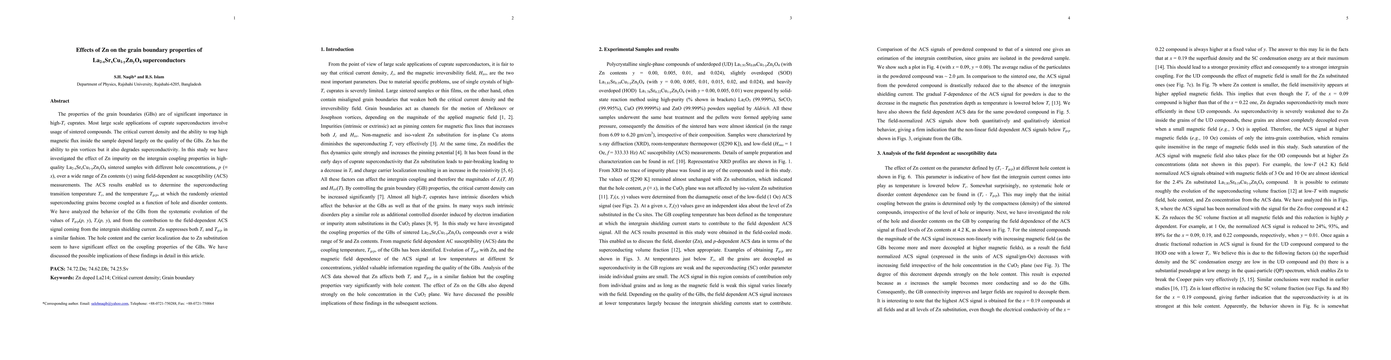 This study investigates the impact of Zn doping on the grain boundary properties of La2-xSrxCu1-yZnyO4 superconductors, finding that Zn suppresses both the critical current density and superconducting transition temperature. The research highlights the significant effects of Zn substitution on intergrain coupling and the implications for high-temperature superconductivity applications.