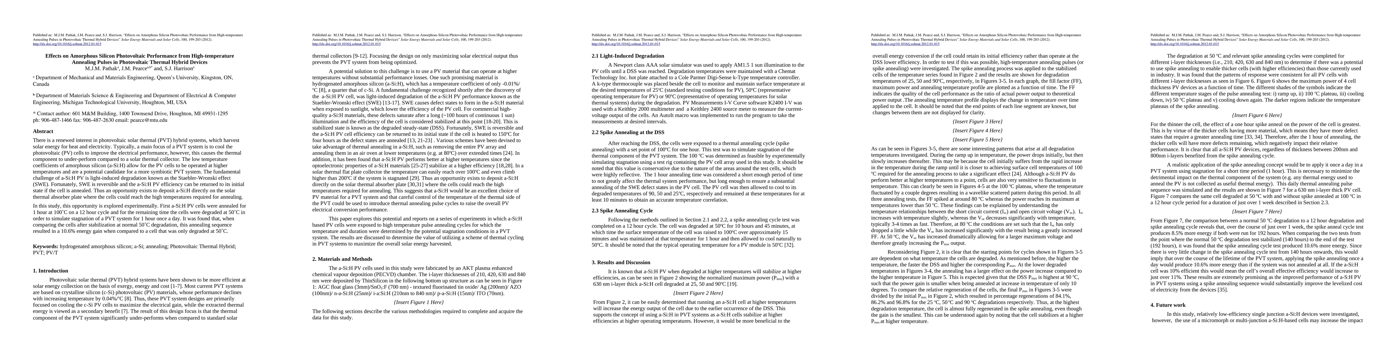 This study investigates the impact of high-temperature annealing pulses on amorphous silicon photovoltaic (a-Si:H PV) cells in photovoltaic thermal hybrid systems, finding a 10.6% energy gain from a 12-hour cycle of annealing at 100°C followed by degradation at 50°C, compared to cells only degraded at 50°C. The results suggest potential for improved PVT system performance using a-Si:H PV cells.