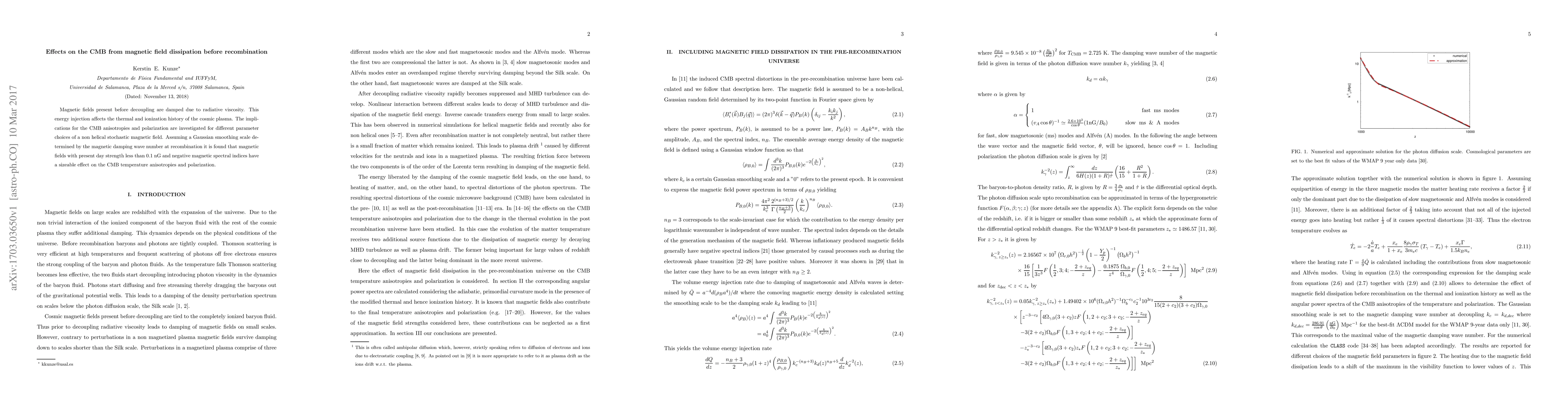 Magnetic fields present before decoupling are damped due to radiative viscosity. This energy injection affects the thermal and ionization history of the cosmic plasma. The implications for the CMB anisotropies and polarization are investigated for different parameter choices of a non helical stochastic magnetic field. Assuming a Gaussian smoothing scale determined by the magnetic damping wave number at recombination it is found that magnetic fields with present day strength less than 0.1 nG and negative magnetic spectral indices have a sizeable effect on the CMB temperature anisotropies and polarization.