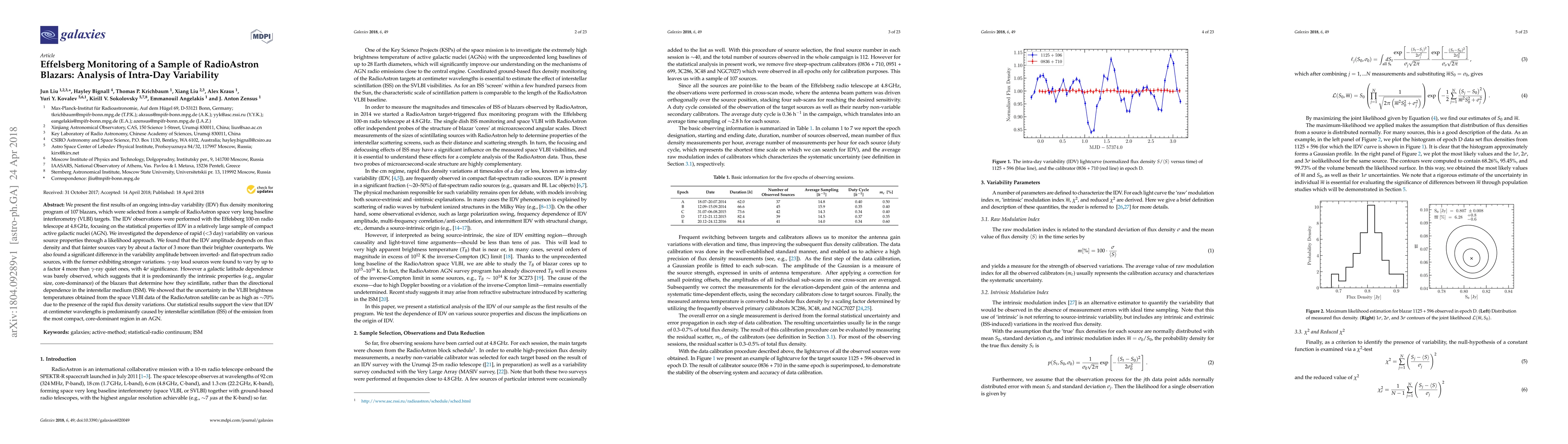 We present the first results of an ongoing intra-day variability (IDV) flux density monitoring program of 107 blazars, which were selected from a sample of RadioAstron space very long baseline interferometry (VLBI) targets. The~IDV observations were performed with the Effelsberg 100-m radio telescope at 4.8\,GHz, focusing on the statistical properties of IDV in a relatively large sample of compact active galactic nuclei (AGN). We investigated the dependence of rapid ($<$3 day) variability on various source properties through a likelihood approach. We found that the IDV amplitude depends on flux density and that fainter sources vary by about a factor of 3 more than their brighter counterparts. We also found a significant difference in the variability amplitude between inverted- and flat-spectrum radio sources, with the former exhibiting stronger variations. $\gamma$-ray loud sources were found to vary by up to a factor 4 more than $\gamma$-ray quiet ones, with 4$\sigma$ significance. However a galactic latitude dependence was barely observed, which suggests that it is predominantly the intrinsic properties (e.g., angular size, core-dominance) of the blazars that determine how they scintillate, rather than the directional dependence in the interstellar medium (ISM). We showed that the uncertainty in the VLBI brightness temperatures obtained from the space VLBI data of the RadioAstron satellite can be as high as $\sim$70\% due to the presence of the rapid flux density variations. Our statistical results support the view that IDV at centimeter wavelengths is predominantly caused by interstellar scintillation (ISS) of the emission from the most compact, core-dominant region in an AGN.