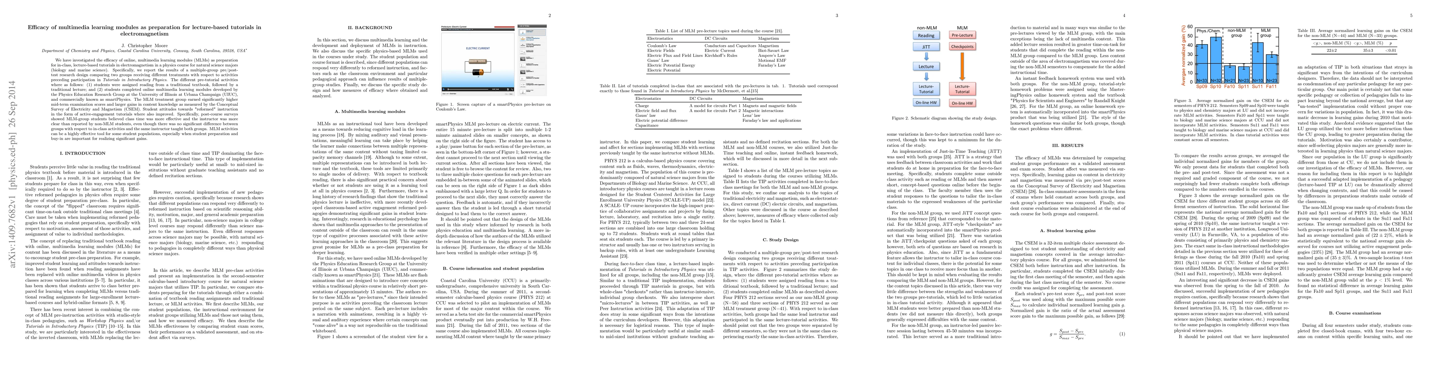 Multimedia learning modules significantly improved mid-term exam scores and student attitudes towards interactive tutorials in electromagnetism. These findings suggest that pre-tutorial preparation with MLMs can enhance student outcomes in physics courses.