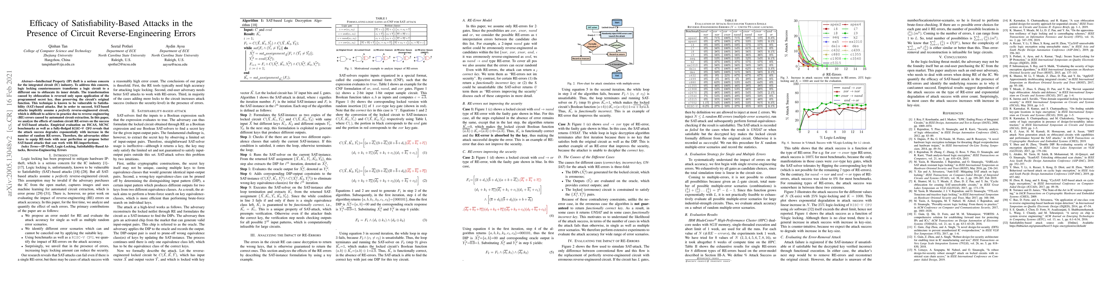 Intellectual Property (IP) theft is a serious concern for the integrated circuit (IC) industry. To address this concern, logic locking countermeasure transforms a logic circuit to a different one to obfuscate its inner details. The transformation caused by obfuscation is reversed only upon application of the programmed secret key, thus preserving the circuit's original function. This technique is known to be vulnerable to Satisfiability (SAT)-based attacks. But in order to succeed, SAT-based attacks implicitly assume a perfectly reverse-engineered circuit, which is difficult to achieve in practice due to reverse engineering (RE) errors caused by automated circuit extraction. In this paper, we analyze the effects of random circuit RE-errors on the success of SAT-based attacks. Empirical evaluation on ISCAS, MCNC benchmarks as well as a fully-fledged RISC-V CPU reveals that the attack success degrades exponentially with increase in the number of random RE-errors. Therefore, the adversaries either have to equip RE-tools with near perfection or propose better SAT-based attacks that can work with RE-imperfections.