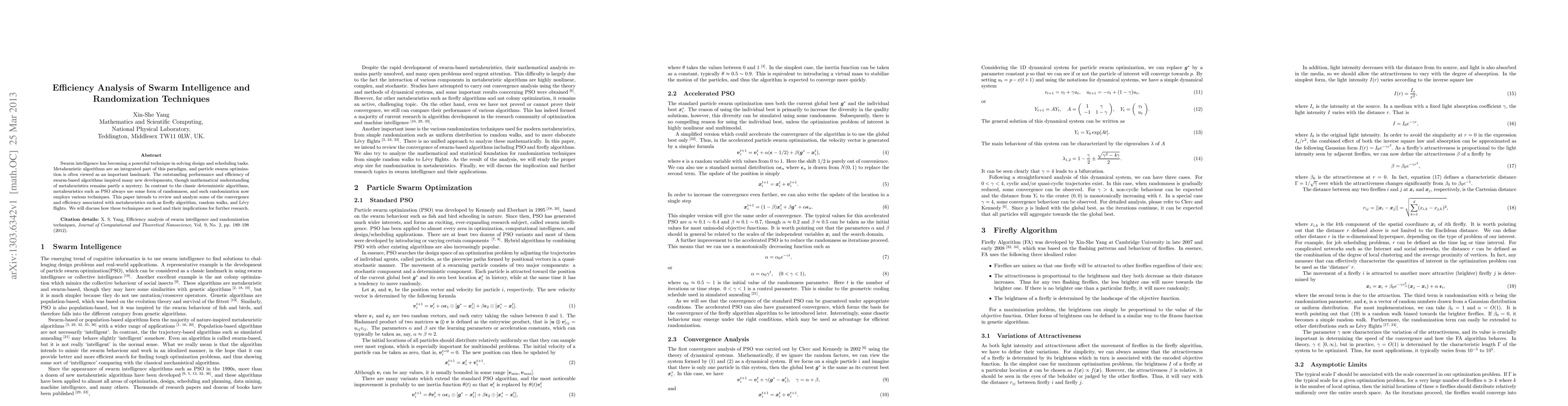 Swarm intelligence has becoming a powerful technique in solving design and scheduling tasks. Metaheuristic algorithms are an integrated part of this paradigm, and particle swarm optimization is often viewed as an important landmark. The outstanding performance and efficiency of swarm-based algorithms inspired many new developments, though mathematical understanding of metaheuristics remains partly a mystery. In contrast to the classic deterministic algorithms, metaheuristics such as PSO always use some form of randomness, and such randomization now employs various techniques. This paper intends to review and analyze some of the convergence and efficiency associated with metaheuristics such as firefly algorithm, random walks, and L\'evy flights. We will discuss how these techniques are used and their implications for further research.