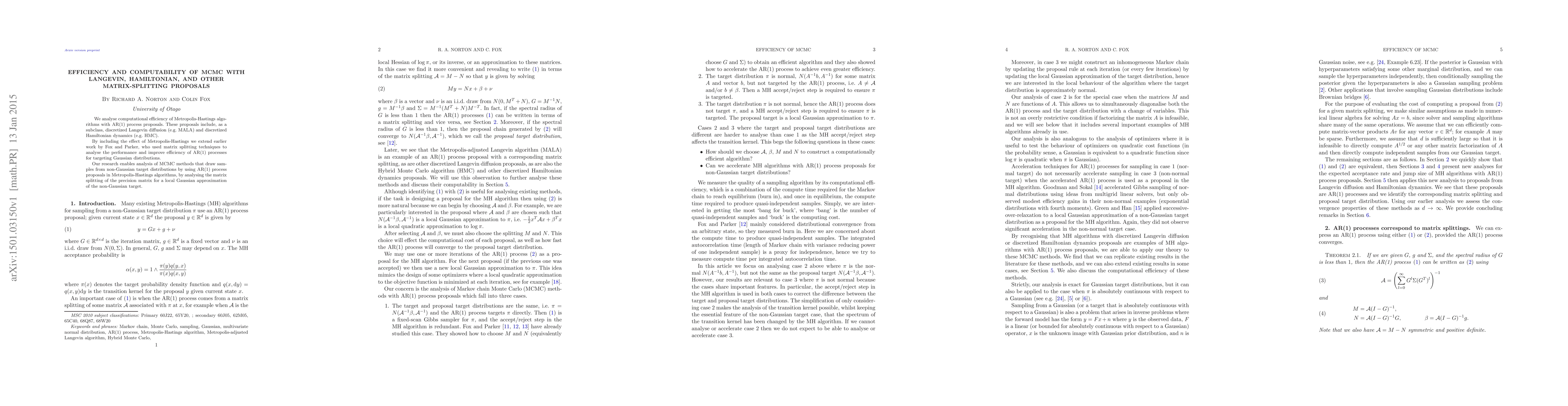 This paper evaluates the computational efficiency of Metropolis-Hastings algorithms using AR(1) process proposals, including discretized Langevin diffusion and Hamiltonian dynamics, extending previous work on matrix splitting techniques. It enables analysis of MCMC methods for non-Gaussian distributions through matrix splitting of the precision matrix.