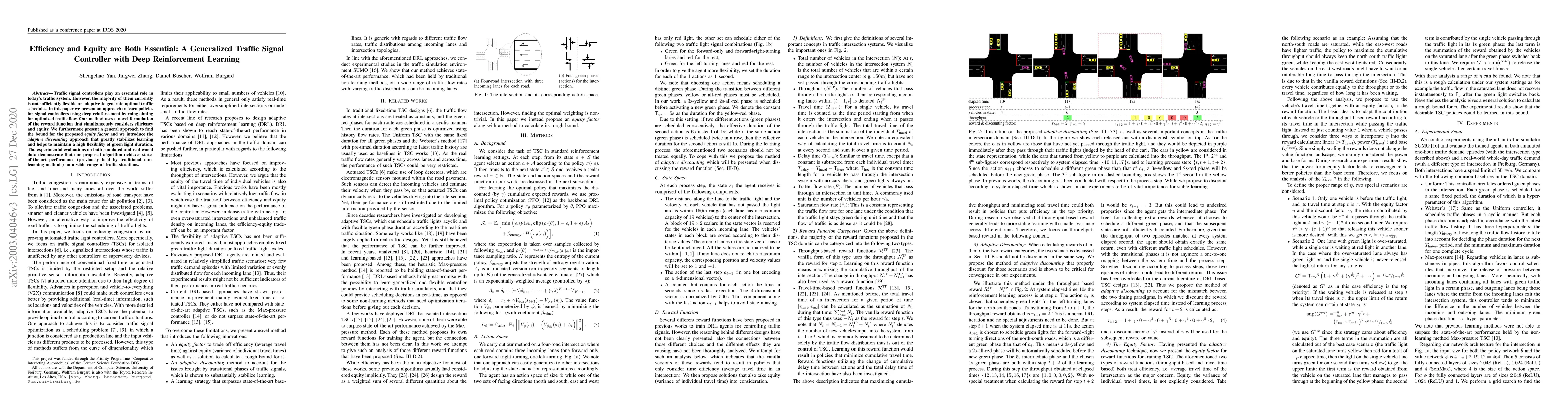 A new approach using deep reinforcement learning improves traffic signal controllers to balance efficiency and equity, achieving state-of-the-art performance in various traffic situations.