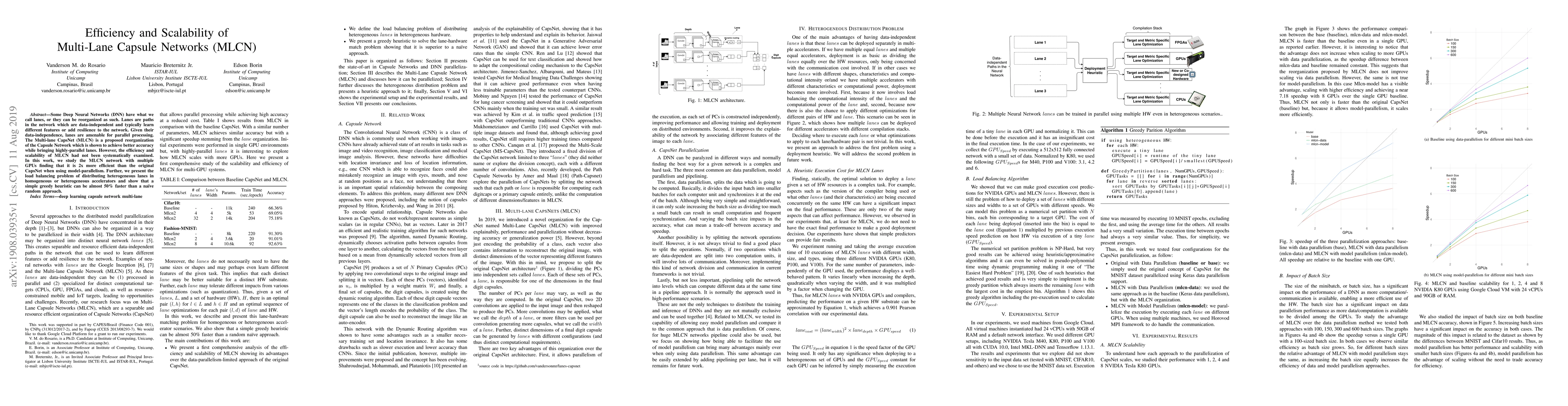 Some Deep Neural Networks (DNN) have what we call lanes, or they can be reorganized as such. Lanes are paths in the network which are data-independent and typically learn different features or add resilience to the network. Given their data-independence, lanes are amenable for parallel processing. The Multi-lane CapsNet (MLCN) is a proposed reorganization of the Capsule Network which is shown to achieve better accuracy while bringing highly-parallel lanes. However, the efficiency and scalability of MLCN had not been systematically examined. In this work, we study the MLCN network with multiple GPUs finding that it is 2x more efficient than the original CapsNet when using model-parallelism. Further, we present the load balancing problem of distributing heterogeneous lanes in homogeneous or heterogeneous accelerators and show that a simple greedy heuristic can be almost 50% faster than a naive random approach.