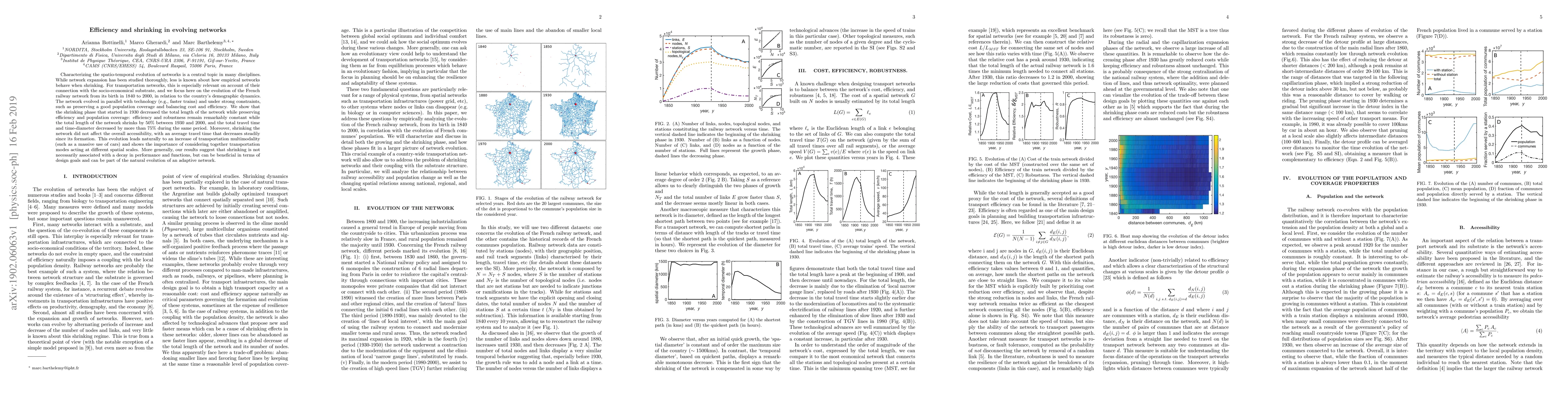 This paper examines the evolution of the French railway network from 1840 to 2000, highlighting how it maintained efficiency and population coverage despite a significant shrinking phase starting in 1930. The study finds that while the network length decreased by 50%, efficiency and robustness remained stable, and overall accessibility improved.