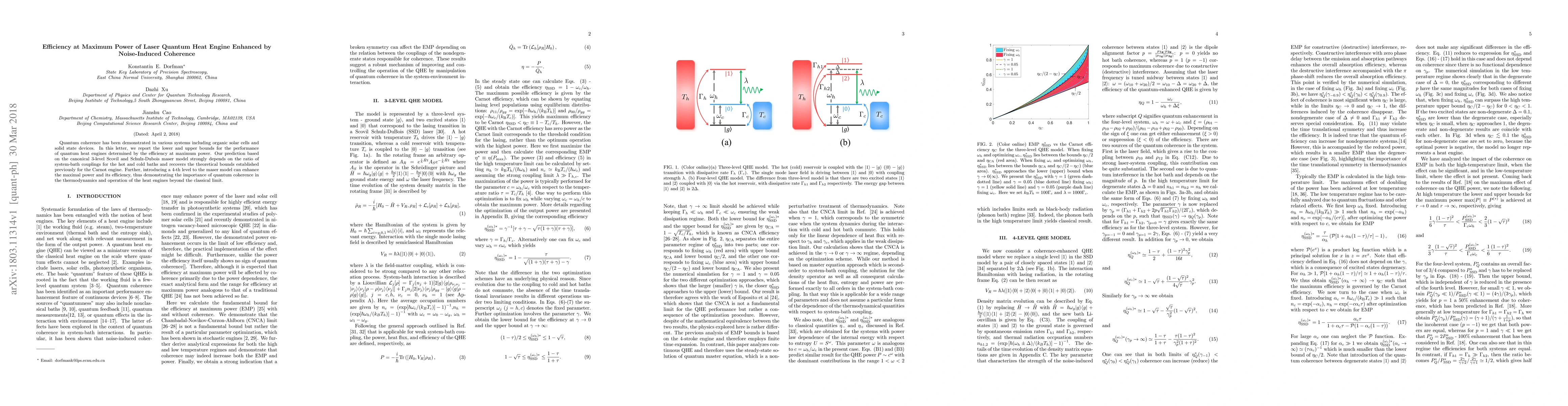 This paper investigates the efficiency at maximum power of a quantum heat engine using a 3-level maser model, showing that quantum coherence can enhance performance. The addition of a 4th level further boosts efficiency, highlighting the significance of quantum coherence in surpassing classical thermodynamic limits.