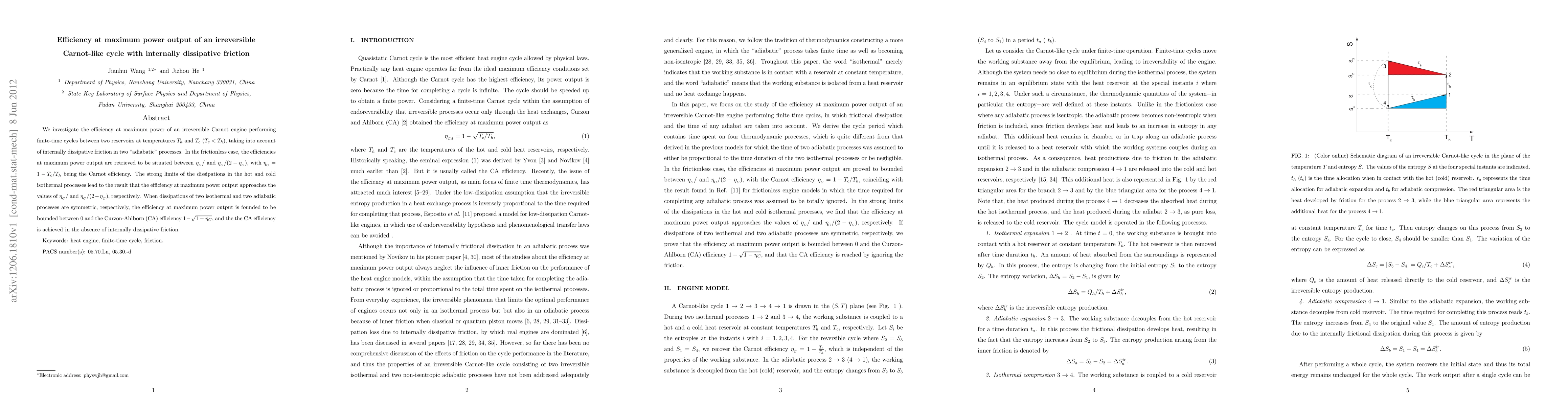 This paper examines the efficiency at maximum power output for an irreversible Carnot-like cycle with internal dissipative friction, finding that it is bounded between $\eta_{_C}/$ and $\eta_{_C}/(2-\eta_{_C})$, with $\eta_{_C}$ being the Carnot efficiency. The Curzon-Ahlborn efficiency is achieved when there is no internal dissipative friction.