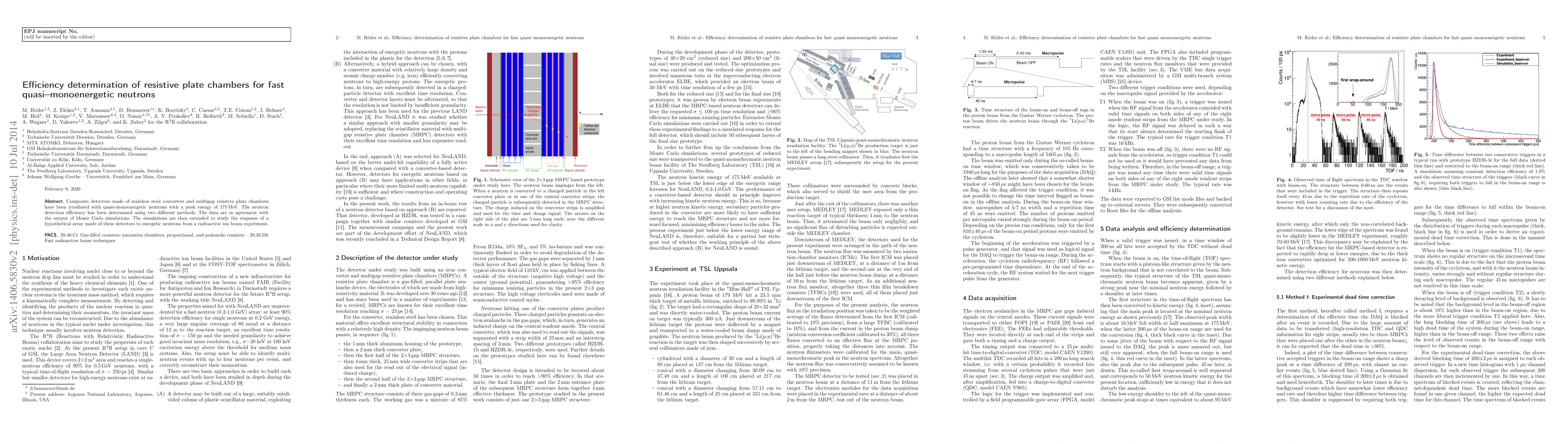 This study determines the efficiency of composite detectors using stainless steel converters and multigap resistive plate chambers for detecting quasi-monoenergetic neutrons at 175 MeV, validated by Monte Carlo simulations. The research extends these simulations to evaluate the potential of such detector arrays in high-energy neutron detection from radioactive ion beams.